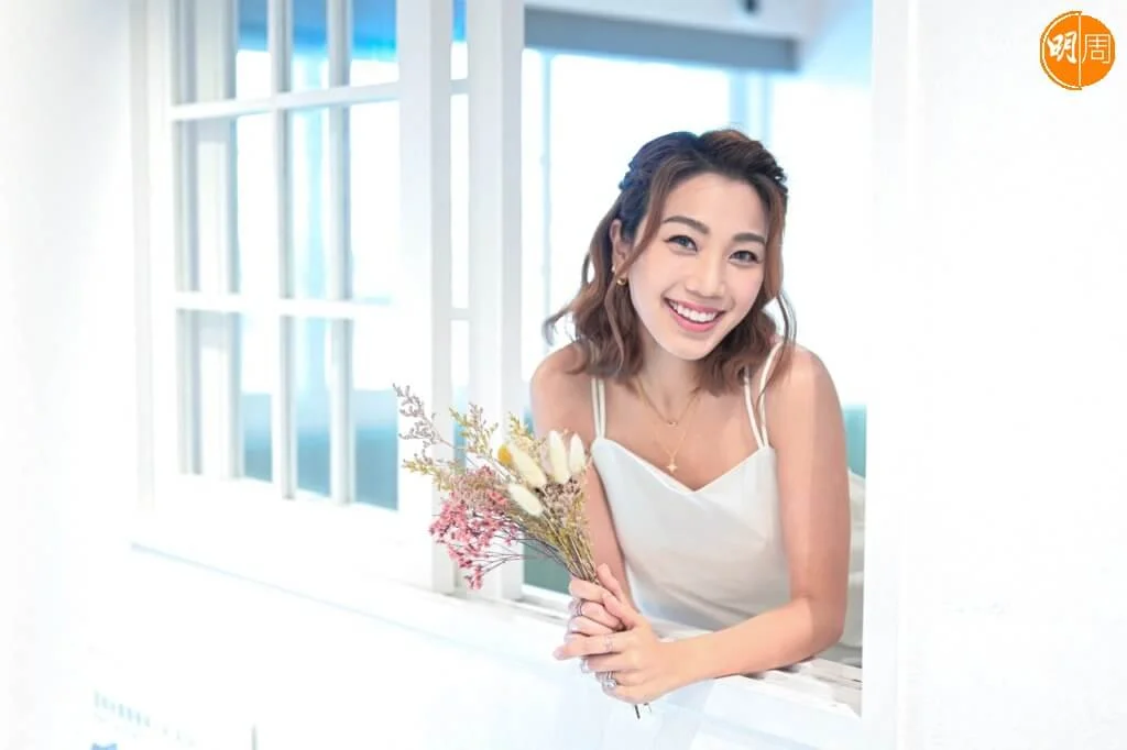 本來打算二○二○年結婚,二人的誓詞也早已寫好,奈何一拖再拖,直至結婚這刻終於可以講給對方聽,「大家等這段誓詞等了兩年多的時間,我們決定照讀俾對方聽,過程中我們互相幫對方成長,我一直講他如何令我成長,他當時都有講,我給他很多色彩及溫暖,因為他向來性格很認真,無論讀書或工作都比較冷靜,他是令我冷靜下來的人,而我就給予他色彩,至於其他講過咩?唔講了,總之當刻氣氛很浪漫及甜蜜。其實我認識他之後,真的多了自信、叻了、成熟了,我覺得人愈大,發覺拍拖,結婚,是很不同的事情,我跟他拍拖之後,所有方向都是朝向未來,有種任務的感覺,我覺得很健康,好型、很有安全感!我很感恩,因為他懂得去支持我,他愛我的家人,而我同樣愛他的家人。」