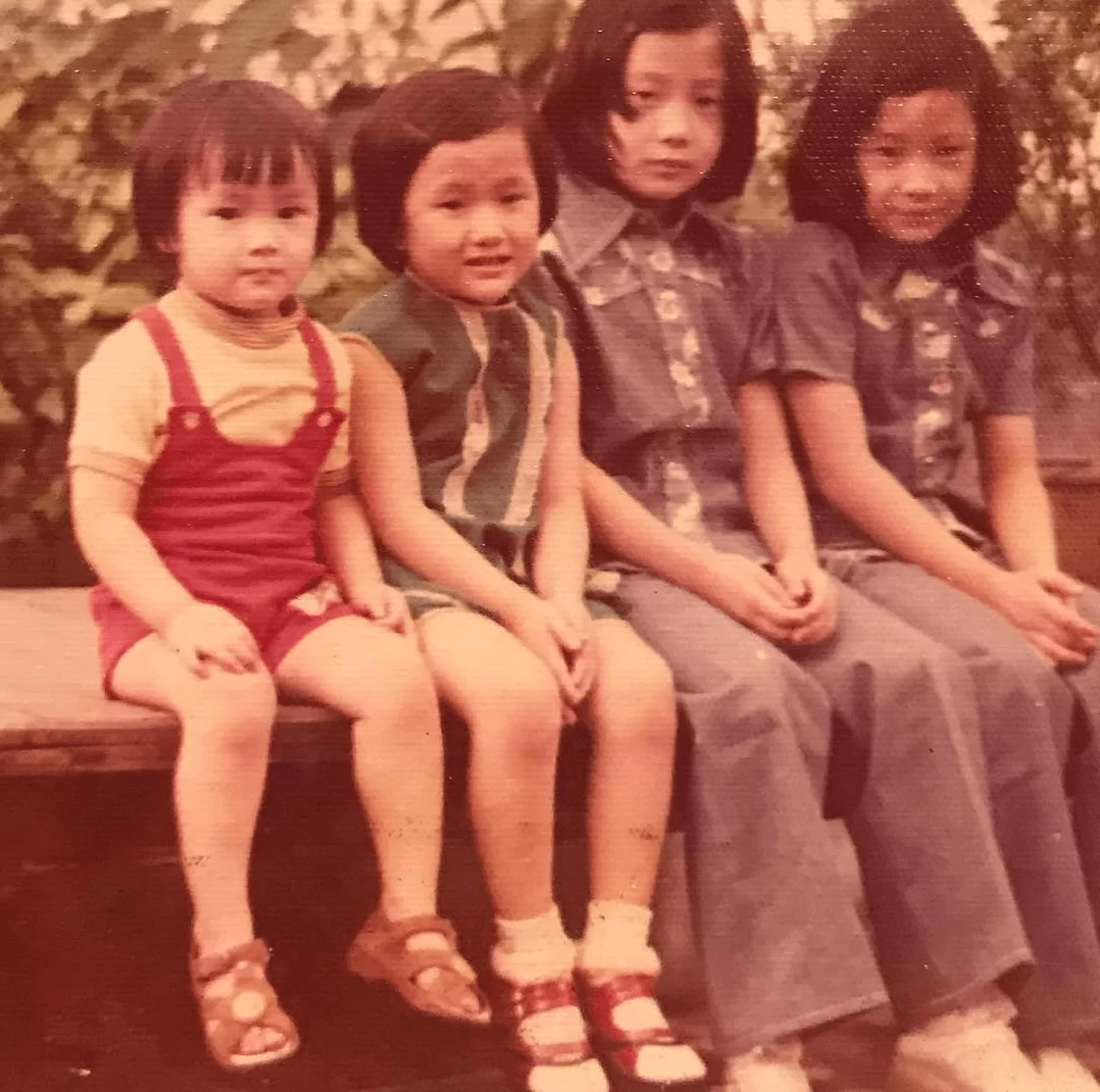 相中有四個可愛嘅妹妹,兩個較大嘅女仔同樣著住牛仔衫、喇叭褲;中間嘅女仔著住綠白直條嘅連身裙;而最細嘅妹妹就著住紅色工人褲。Sammi就俾埋個貼士大家,佢留言:「從小就鍾意紅色。」仲話:「媽媽說mi從小就非常大膽不害羞,小時候並不喜歡穿內褲。」未知相中邊個妹妹咁醜醜豬唔著內褲。