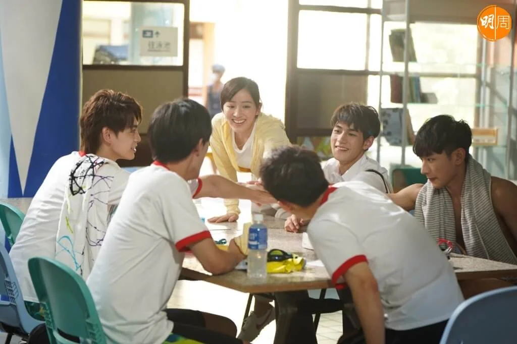 問題是,小說角色年齡是十三演到十六歲。一般演員廿多歲,扮演高中生難度不大,最難是扮初中生。因此,監製選擇模糊化,也就是你看完首集,隱約知道主角們是中學生,但初中或高中?無從得知。劇集不單止模糊了年級,也模糊了社和班。香港讀中學,一定熟悉社際陸運會和水運會,但電視劇強調A班和C班的對決,又因為有了吳海昕這個班主任,會以為是班際游泳賽,但提及A班代表隊比C班高一級,加上水運會分色設置,又像是社際游泳賽。