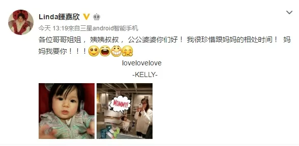 鍾嘉欣自從2016年2月在溫哥華與脊醫Jeremy結婚之後,同年8月就誕下囡囡Kelly,一直留在當地專心湊B做幸福少奶奶,不過偶爾會會返港出版品牌活動和跟一眾姊妹聚會。嘉欣bb今日在微博上載自己與囡囡在超級市場買家庭日用品,只有7個月大的Kelly真的好可愛,難怪嘉欣不時都上載囡囡的萌照啦!