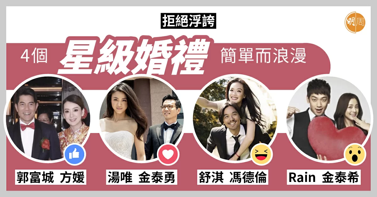 結婚是人生大事,很多人都希望大宴親朋舉行童話式婚禮。然而,不少圈中藝人都希望婚禮可以回歸平淡。其實簡單樸素的婚禮都可以好幸福,最重要是一對新人心中有愛。