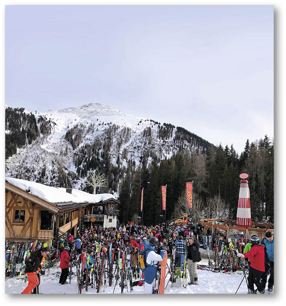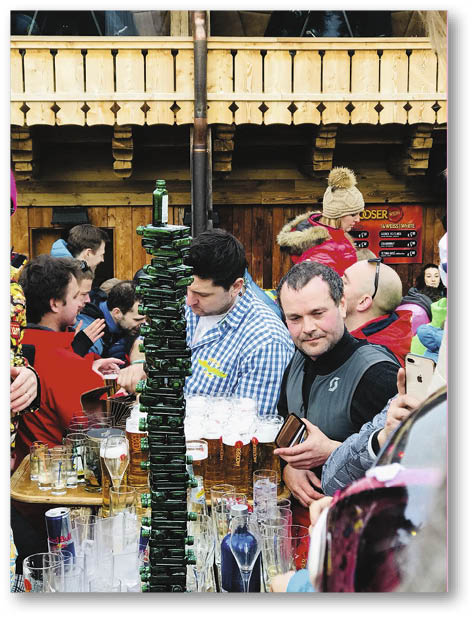 滑雪當然是此行的主打,不過這個滑雪場最受遊客歡迎的,卻是位於山腰一間名為「Mooserwirt」的酒吧,每到下午三點左右,滑雪客就會在酒吧小休,室內很快擠到水洩不通,大家把雪橇插在雪中,在冰天雪地下一杯又一杯喝個痛快,「酒吧最出名是『炸彈』,將一小樽烈酒浸在啤酒杯內,我第一天飲了一杯,已經醉到幾乎要碌落山,之後幾日多數飲一款加了丁香的熱紅酒,很多鬼佬飲到醉,到處在找自己的雪橇,有些醉到像我一樣碌落山,酒吧很有氣氛,個個都玩得盡興。」