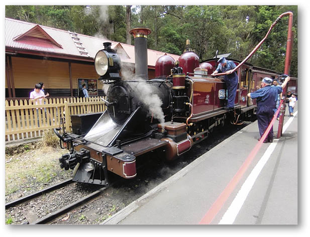 Jacob見到蒸汽火車「加油」,覺得好新奇。
