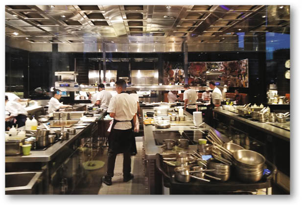 開放式廚房,看到廚師忙碌地做菜。