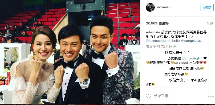 52歲的曹永廉入行23年,去年憑《公公出宮》飾演太監「細雞」突圍而出,更加首奪《萬千星輝頒獎典禮》的「最佳男配角」獎,他早前透露自己將會於新年之與薛家燕、黎小田和湯寶如主持新節目,更加有機會在節目開金口唱歌。當他被問及會否唱好友蕭正楠的歌的時候,他就搞笑回應︰「都沒有人識,他的歌不紅。」而蕭正楠昨天就「還撃」,上載一段曹永廉唱陳奕迅的金曲《明年今日》,更加留言︰「沒有更難聽!只有最難聽!」不過網民就回應阿廉唱得不錯。