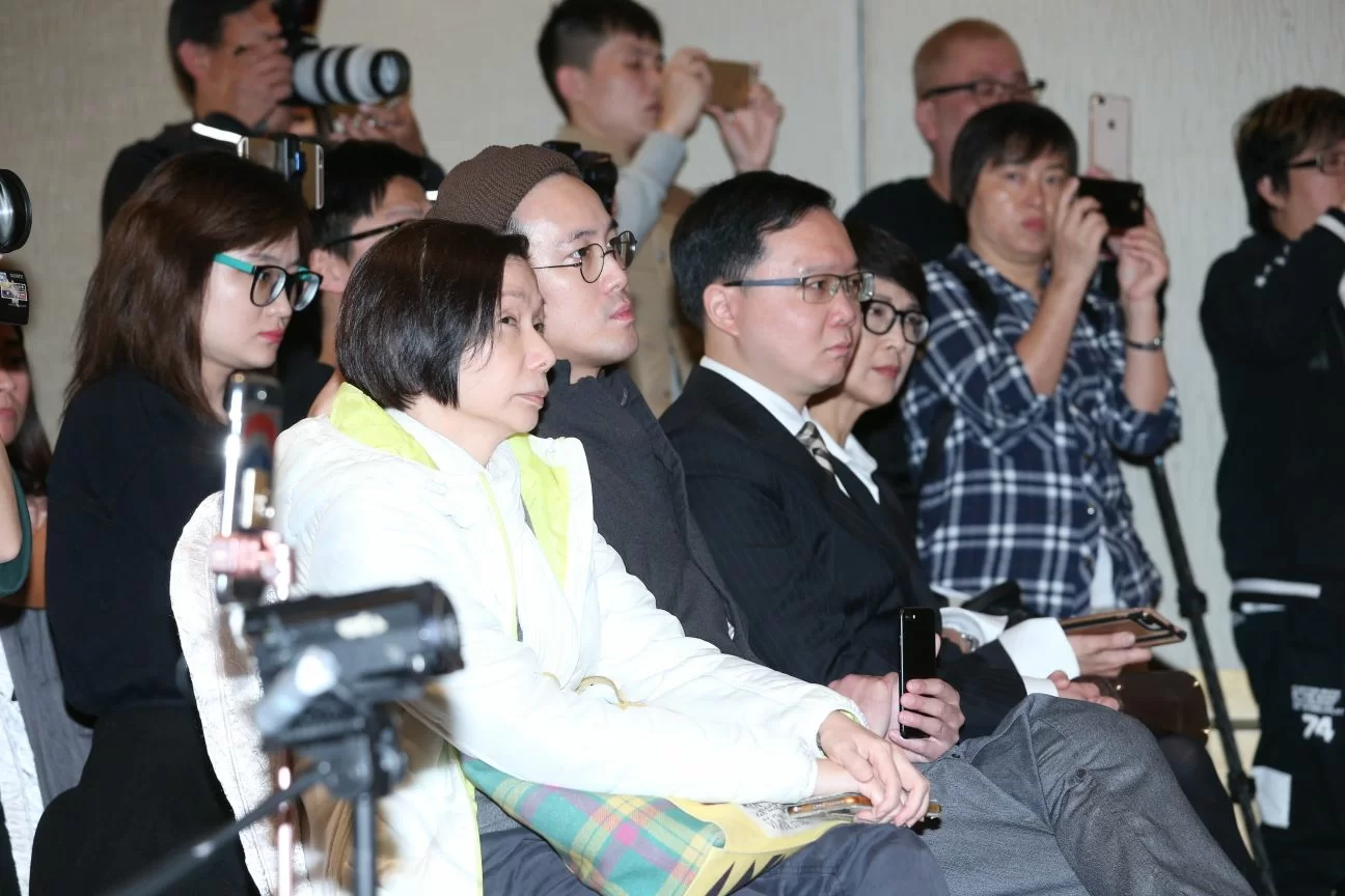 曾志偉在兒子曾國祥、林嘉仁大律師、方兆光律師陪同下召開記者招待會