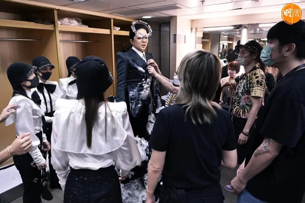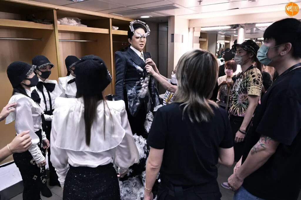 Janice穿上本地設計師Kit Wan的服飾氣勢登場
