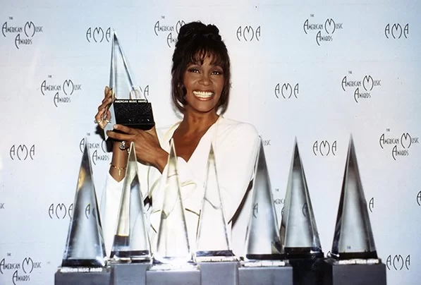 已故天后雲妮候斯頓曾以22個大獎成為AMA獲獎最多的女歌手,圖為1994年她於當屆贏得八項大獎。