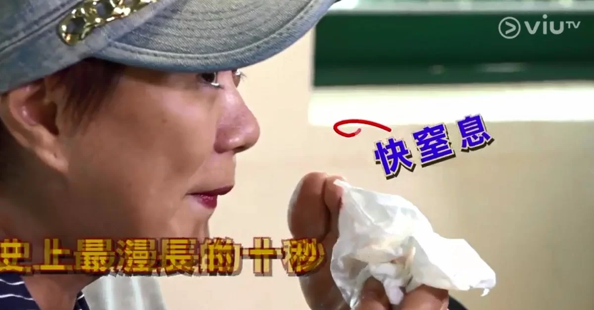 兩位同行男主持看到這個情況都強行忍笑,接着倒數聞腳趾時大姐明閉氣閉足全程,終於捱過了漫長的十秒。雖然大姐明的鼻孔沒按照規則完全貼實男主持腳趾,但總算玩得起兼有交代吧。