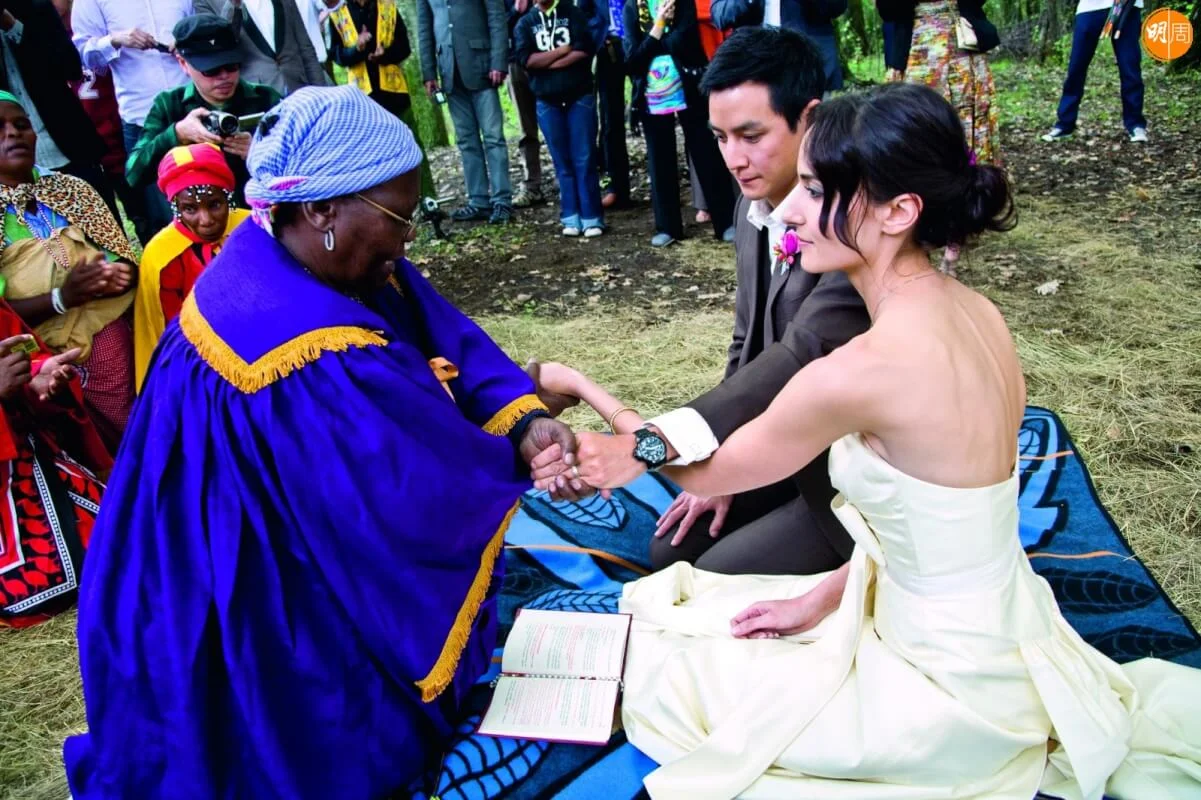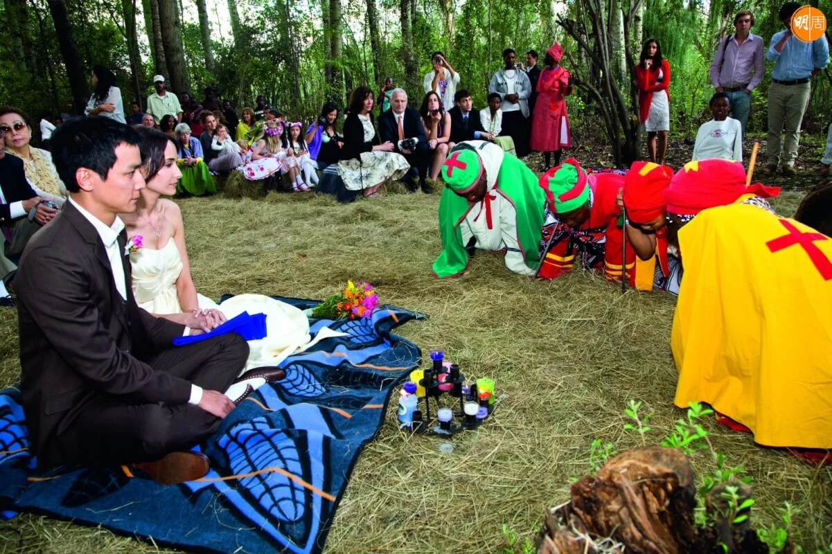 二人在南非屋企附近找了一個森林,進入前有一條泥路,兩棵樹好像一道門,感覺仿如置身教堂,於是決定在這裏行禮。婚禮當日,一對新人沒有華麗嫁衣,Lisa找了何國鉦設計一件愈簡單愈好的婚紗,Daniel則穿一套簡單啡色西裝。由於他們沒有宗教信仰,故邀請了當地一位德高望重「大師」Monica主持婚禮,對方開出的條件別開生面。她要十四枝芬達汽水,一定要冰凍,在儀式前偕徒弟飲用;儀式完結後,又要準備另一種當地出產的汽水,還有十四塊T骨牛扒,因為這些在她的山窿買不到,平日都是吃天然食物,而芬達是當地最受歡迎飲品。