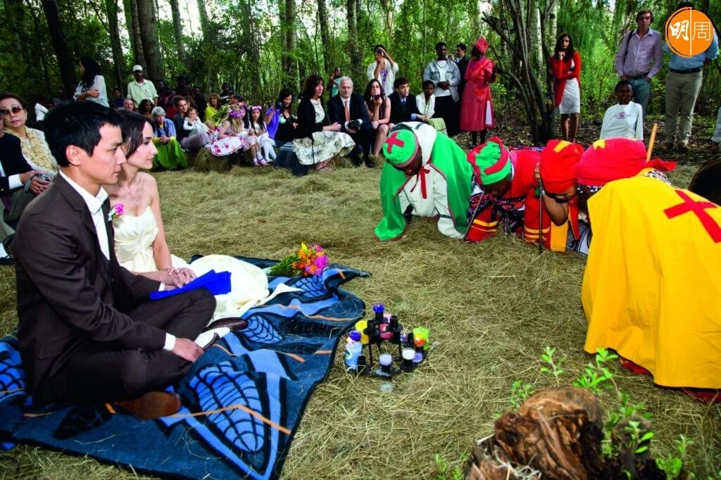 婚禮前一晚下大雨,翌日下午兩時,雨漸漸停下來,嘉賓慢慢進場。到了吉時兩時半,太陽出來了,照耀着一對新人。儀式完畢後,天空完全放晴,連當地村民也說是他們前所未見,是最神奇的婚禮。