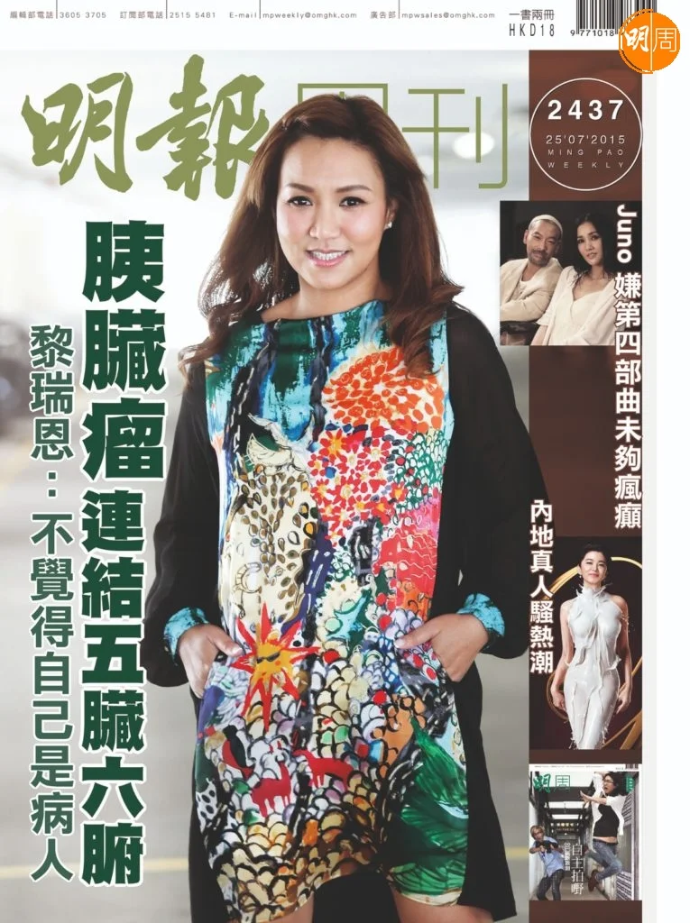 心魔漸除,她感到無比暢快,心想要更加愛惜自己,並順道做吓body check。「我以前好怕做身體檢查,那陣子腸有點痛,吃東西又有點吞不下嚥,以為腸有瘜肉、胃有幽門螺旋菌,便入醫院照胃鏡,照出來一粒瘜肉也沒有,卻有腸化現象,胃亦沒有幽門螺旋菌,可是醫生發現兩個黑影,不得不再做一次檢查,結果照到(胰臟)有兩個瘤,一個頭、一個尾,都是良性,尾部那個可以切除,但在頭部那個連着太多器官,包括胃、十二指腸與肝等,要切的話,各個器官都要切三分一。」