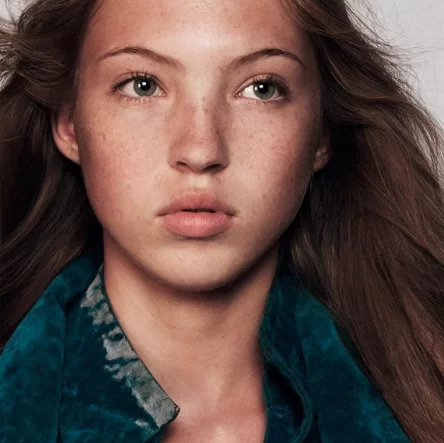 Lila跟隨媽媽Kate Moss步伐入行做模特兒,近日為化妝品牌拍廣告照。