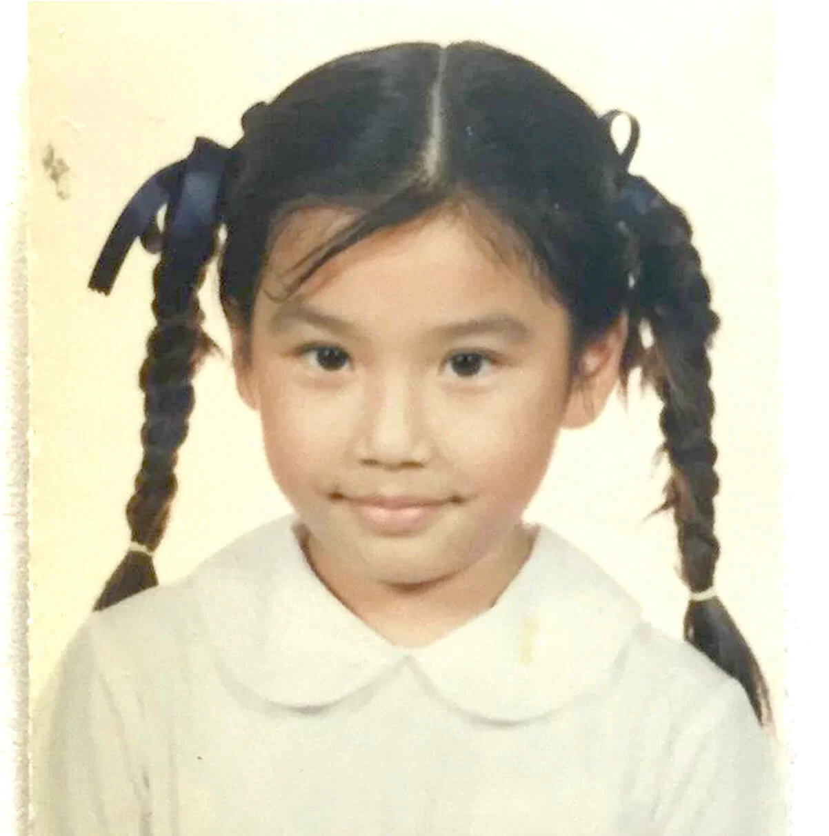 黃智雯(Mandy)近日忙於拍攝《降魔的2.0》,飾演擁有超能力嘅醫生。昨日,Mandy又有新嘗試,佢紮起孖辮扮學生妹,另配一張童年學生相,見兒時嘅Mandy已生得一副美人胚子,長得眉清目秀,笑得非常可愛!