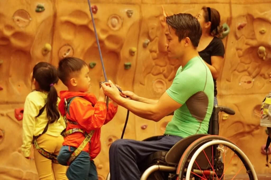 為了兒子,他選擇坐在輪椅上開心生活,意外後一年沒有任何收入,他每天從屯門坐輕鐵再轉火車,到火炭體育學院打乒乓球,「我從小喜歡運動,乒乓球、籃球、田徑樣樣都喜歡,因為攀登運動有獎牌又有資助,所以專注做攀登運動員,意外後有機會以傷殘運動員身份,到體育學院參加乒乓球訓練,每天善用傷殘交通津貼,來回四元就可以去火炭打乒乓球。」一年後,他決定不做傷殘運動員,認為人生除了運動員,還有很多值得做的事。