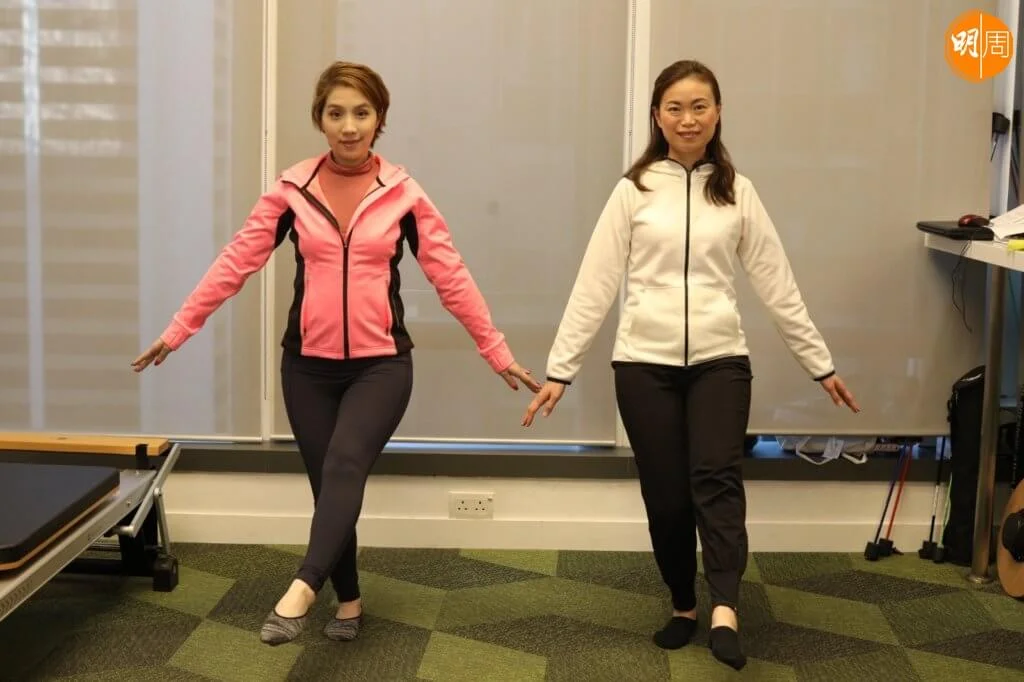 單腳站立訓練平衡,維持十至二十秒,身體盡量不要晃動,如果有需要,可扶着穩固的物件,令自己保持平衡,如果單腳站立能輕易做到,可以加強訓練,在腳下加一個軟墊,同樣是控制平衡,不要晃動維持十至二十秒。