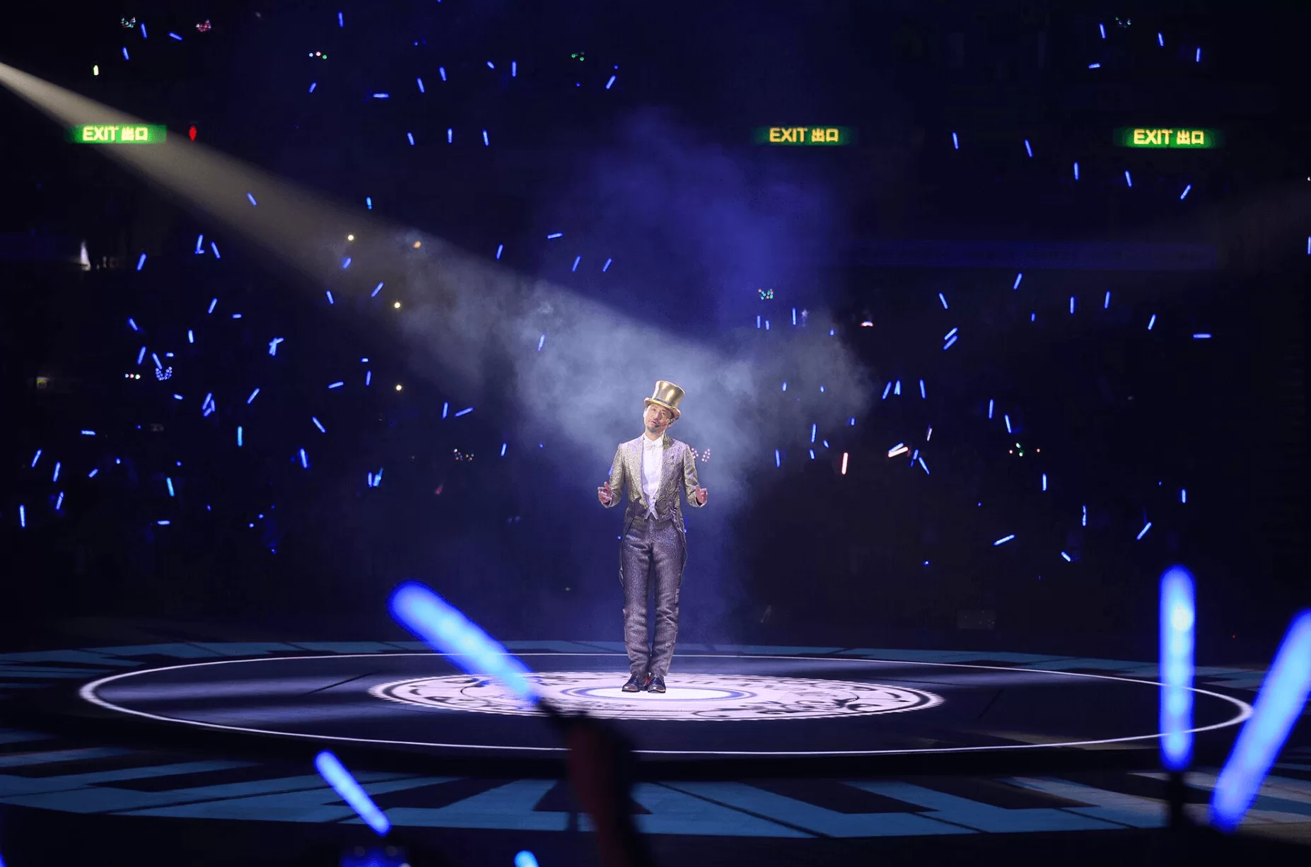 之後又問在場香港觀眾,有沒有人是第一次看他的演唱會,然後自我介紹說:「我在香港出生及長大,唱歌唱了三十四年,演唱會開了八百多埸。」而看過的,就希望他們會覺得他今次的表演比兩年前更成熟。
