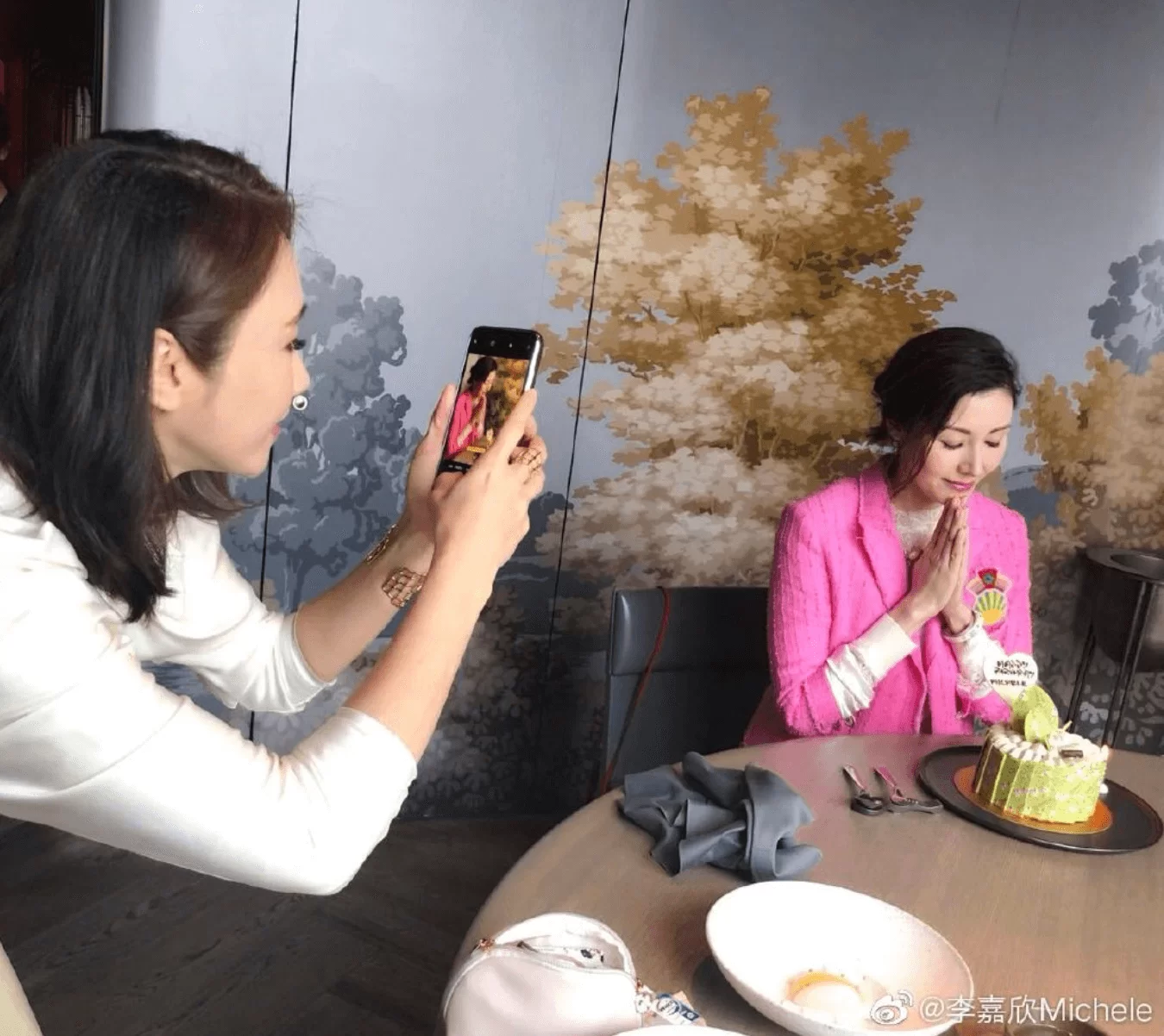 Michele於社交網分享多張聚會照片,見「大美人」身穿粉紅色外套以及長裙,打扮非常青春!而GiGi則化身攝影師為壽星女留倩影,Michele都相當滿意照片,留言讚老友:「 在最美攝影師黎姿的角度下, M有不一樣嗎 ?」