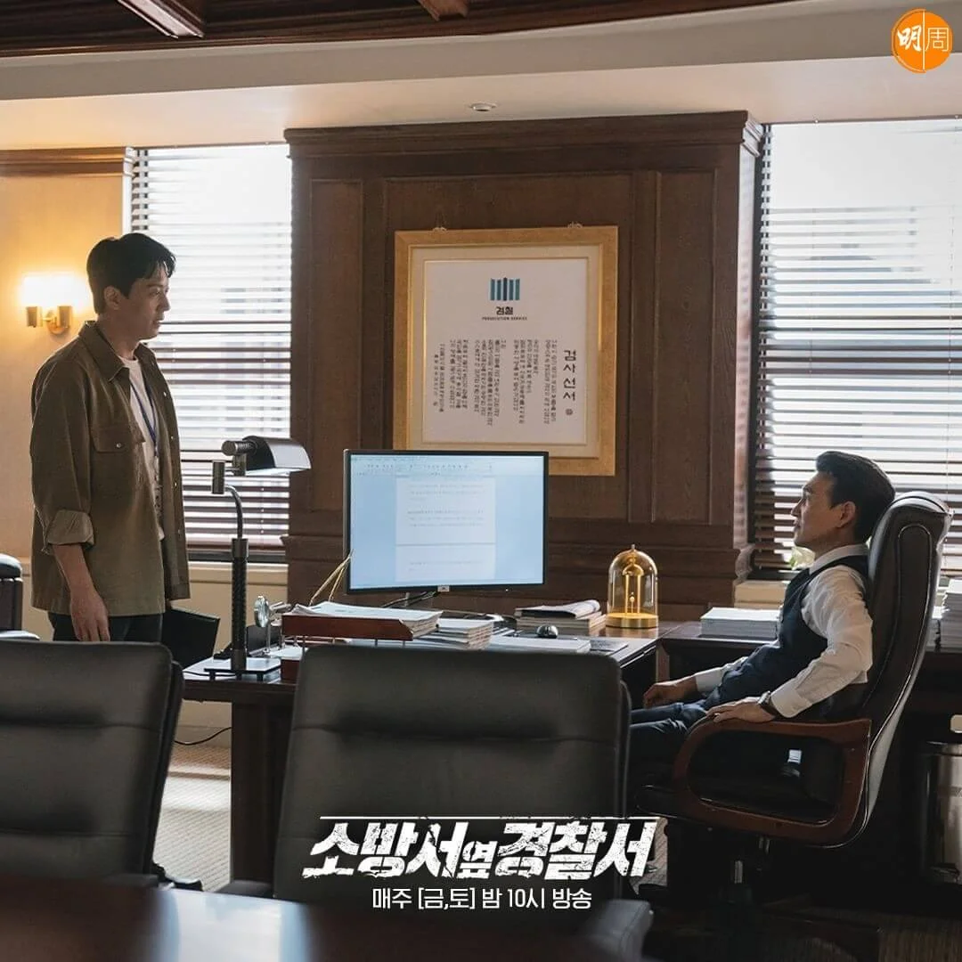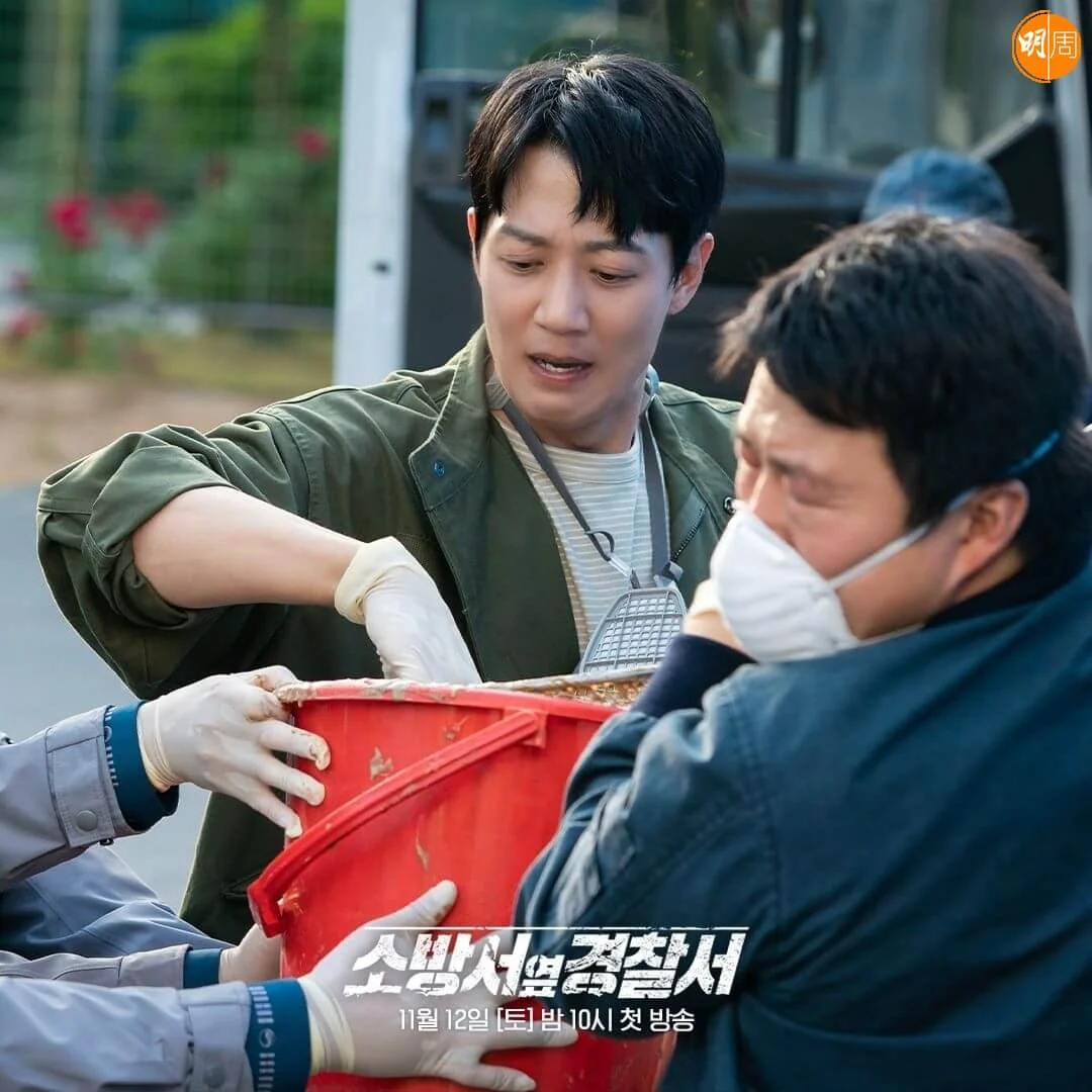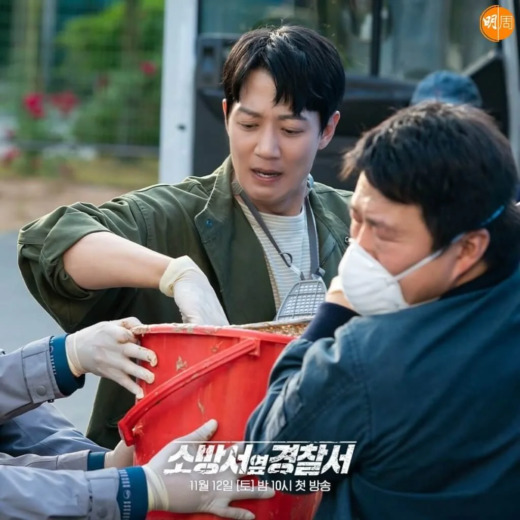 不過,把多個紀律部隊同時成為劇集主幹就比較少見,而新劇《災後調查日誌》就是把消防加刑警加救護合作救災救難的劇情,讓大家耳目一新;劇中兩位男主角金來沅及孫浩俊分別飾演刑警陳浩凱及消防隊目奉都鎮,在第一集中,金來沅因捉拿犯人時使用過份武力,被降職到二線城市做刑警,而警署就在消房局隔鄰,經常要一齊出動救援,由於金來沅經驗老到,在第一次出差中,要協助消防隊拯救被變態犯人禁錮的受傷少女,但少女被禁錮的單位藏在小社區,大家毫無頭緒下,如何救人呢?金來沅想到幾個辦法都沒效,最後利用有消防隊這個條件下,教被禁錮少女縱火,利用火災的火勢及煙霧來找出犯案單位,雖然孫浩俊不贊成,但時間緊迫,救護員宋雪(孔升妍飾)唯有同意,最後成功救人!