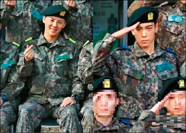 BIGBANG成員T.O.P和JYJ成員俊秀再有近照公開,今天(7日)陸軍訓練所公開一批訓練兵新相,當中T.O.P所在的1中隊隊友分別做出手指心心手勢,T.O.P則貫徹上次的搞怪風格,指着鏡頭chok樣。而俊秀就跟同袍在戶外餐桌坐定定拍照,相比起T.O.P顯得十分正經。另外,T.O.P將於29日分配到首爾江南警署的警察樂隊服役,俊秀亦獲派到警察廳宣傳團服役。