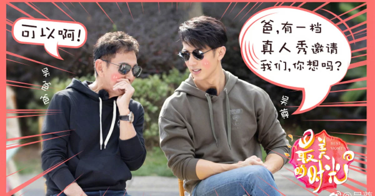 原來吳尊與爸爸已接拍江蘇衛視的親子兩代相處的真人騷《最美的時光》,節目上一季曾邀請過S.H.E任家萱Selina和爸爸出演,今季節目有五組藝人參與,除了吳尊外,還有向佐、郭碧和、劉維和孫偉,將於十一月播出,目前吳尊與爸爸正於拍攝中。