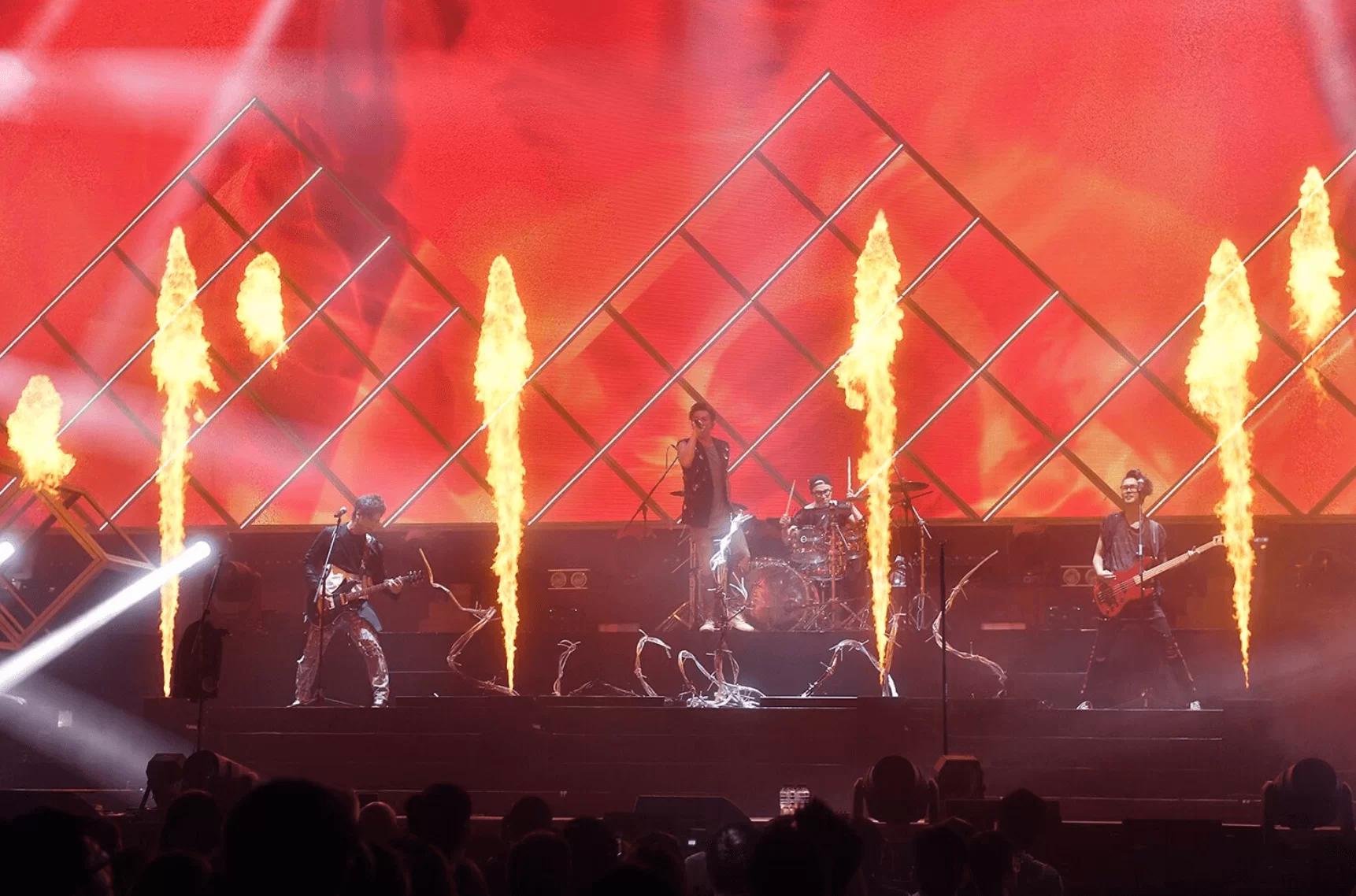 來到Dear Jane期待多年的「玩火」環節,演唱《咖啡因眼淚》、《一去不返》及《遠征》時,台上不斷噴出火柱火球,畫面澎湃,一圓他們多年來的台上噴火效果夢想。