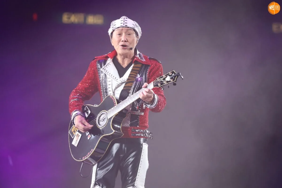 之後Sam換上一身繼續閃爆的紅白皮褸,拿着結他大唱英文歌,然後第一組嘉賓,就是兩個兒子及徒弟,四人一齊jam《佛跳牆》、《錢會繼續嚟》、《咪當我老襯》。