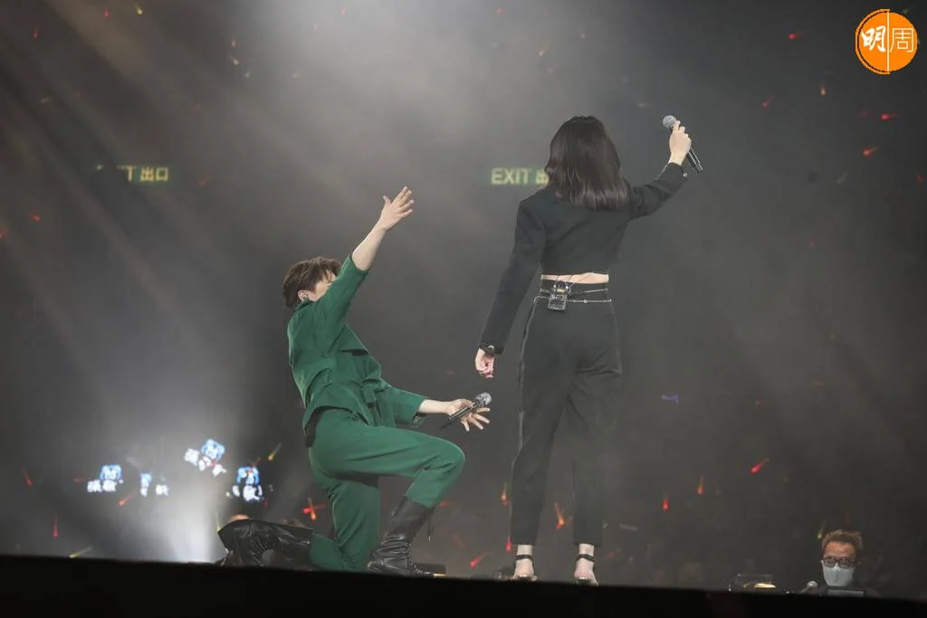 張敬軒獻唱《迷失表參道》和《Yes & No》穿上露左邊手臂的黑色有花邊設計的上衣,他在多謝來自五個界別的排舞師時,也提到因為穿這件襯衣而要脫「加拿大」的毛,觀眾即報以如雷掌聲,他說:「估唔到脫毛都有掌聲,是屋企姐姐幫我剃毛,搵到她煮早餐以外的用途,佢仲擔心會令我受傷,但我沒有,我以為過咗40,新陳代謝會慢咗,點知長得好快,噚晚返到屋企佢瞓咗,我自己補咗幾刀,點知刮損了。」軒仔提到見到台下好多女神,當中有娜姐和七師傅,仲話屋企樓下保安都讚七師傅正,有fans大聲叫軒仔咀她,又舉燈牌叫佢哋結婚,軒仔說:「疫情規矩係唔可以結婚㗎!下世啦!」然後面向七師傅說:「下世我投胎要做你老公!」然後擰歪面說大吉利市,仲話紅館成日令人講錯嘢。