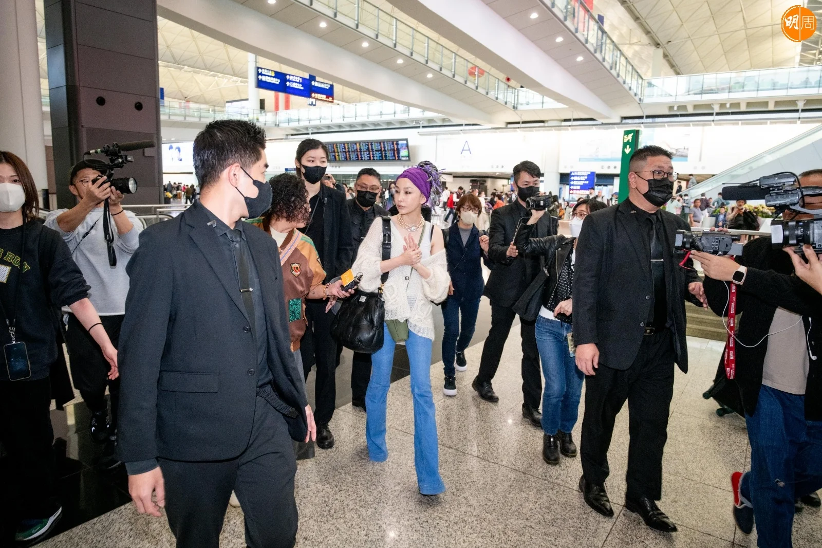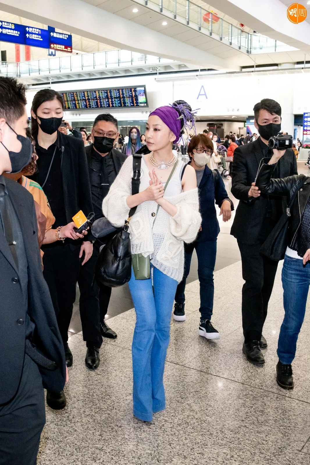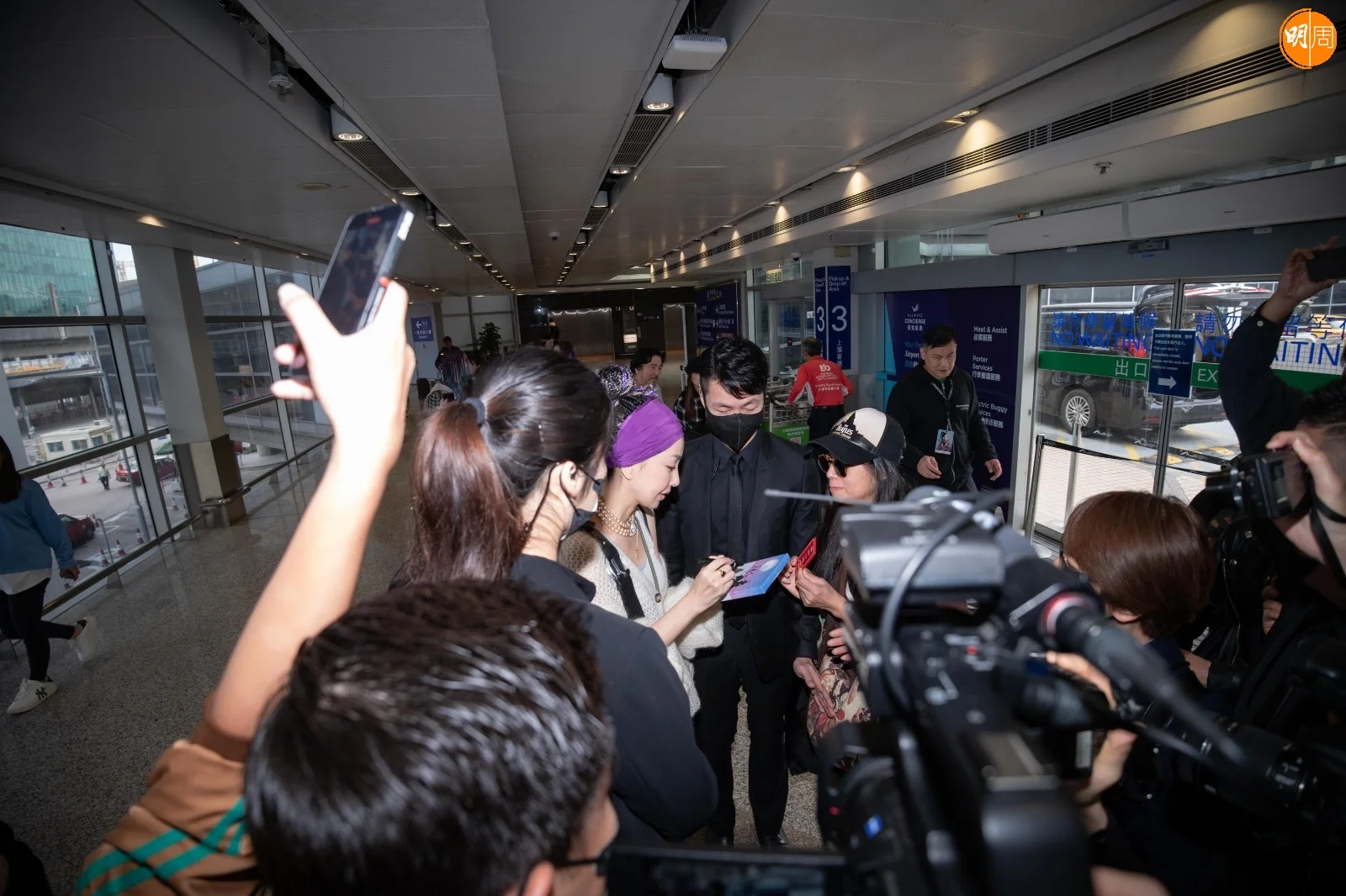 將於本周六(3日)連開兩場港騷的日本歌后中島美嘉,今午飛抵香港作騷前準備。以紫色頭巾配跌膊冷衫與牛仔褲時尚裝扮出閘的她,喜見現場有10多名粉絲接機,除揮手打招呼外,還為他們簽名,表現親切。