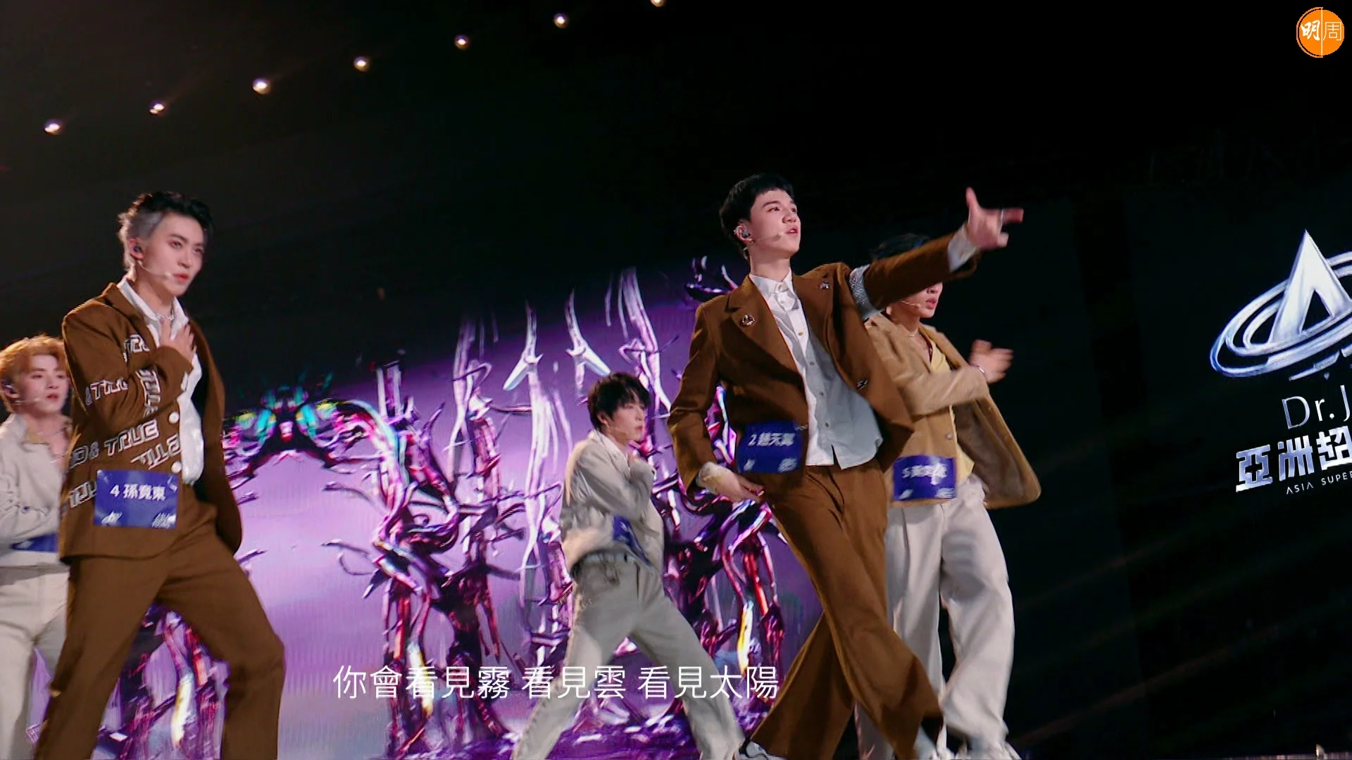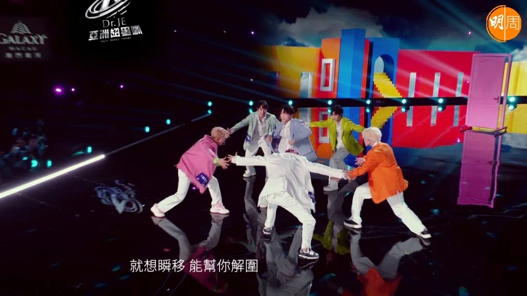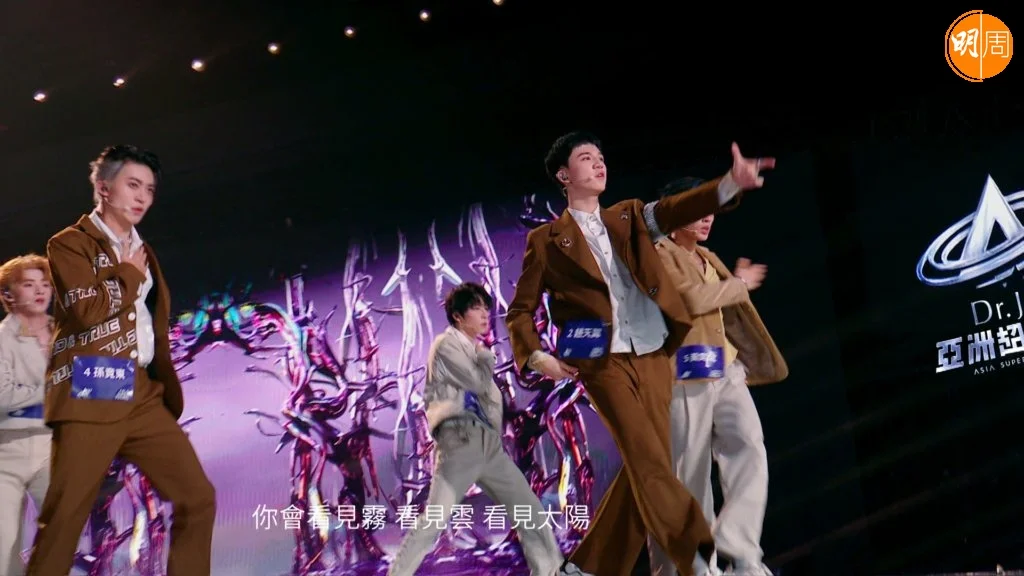 《亞洲超星團》昨晚(16日)播出一集是第一次舞台公演,出場名單如下:《Phantom》對戰組合,有「魅影星系隊」愛合、艾煜坤、黃星綽、謝鑫、阿昕然和朱永強,VS「飛到飯堂隊」譚奕天、江文俊、梁詩煜、衛軒汶、郝瑞然和蔡鑫;《One and ONLY》對戰組合,有「純愛戰士隊」鐘駿一、文佐匡、龍之介、沈梓豪、吳玄曄和陳梁,VS「Magic cube隊」智樹、土方琉伊、孫瀟威、王坤、汪穆清和黃鑫;《Lydia》對戰組合,有「深藏不露隊」冼靖峰、余宗遙、楊奕辰、大夢、路己和羅奕傑,VS「天天探險隊」黃輝雄、黃奕斌、趙天翼、肖宇浩、白子奕和孫竟東。經過一輪激戰,勝出隊伍分別是「飛到飯堂隊」、「純愛戰士隊」和「天天探險隊」。
