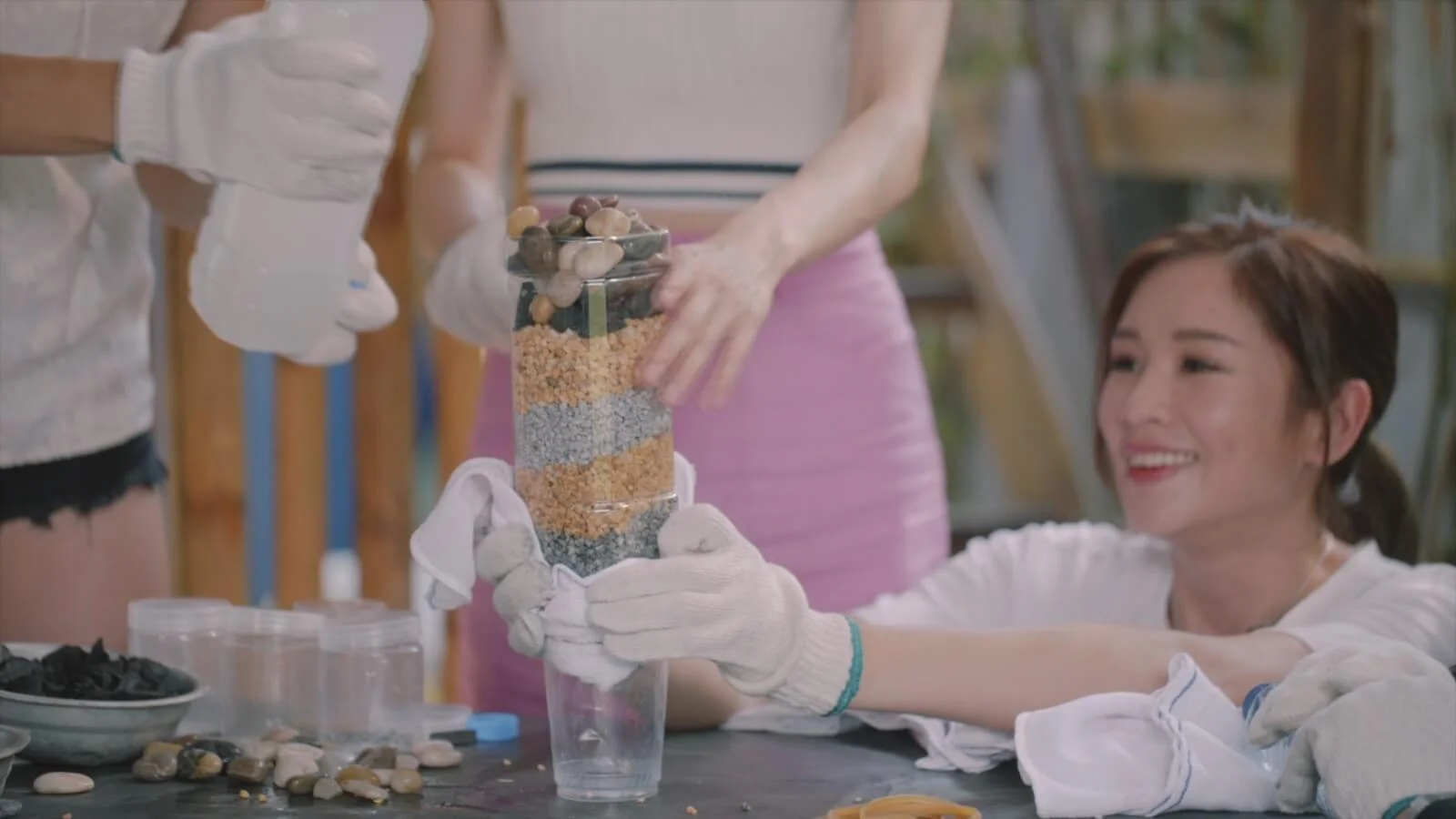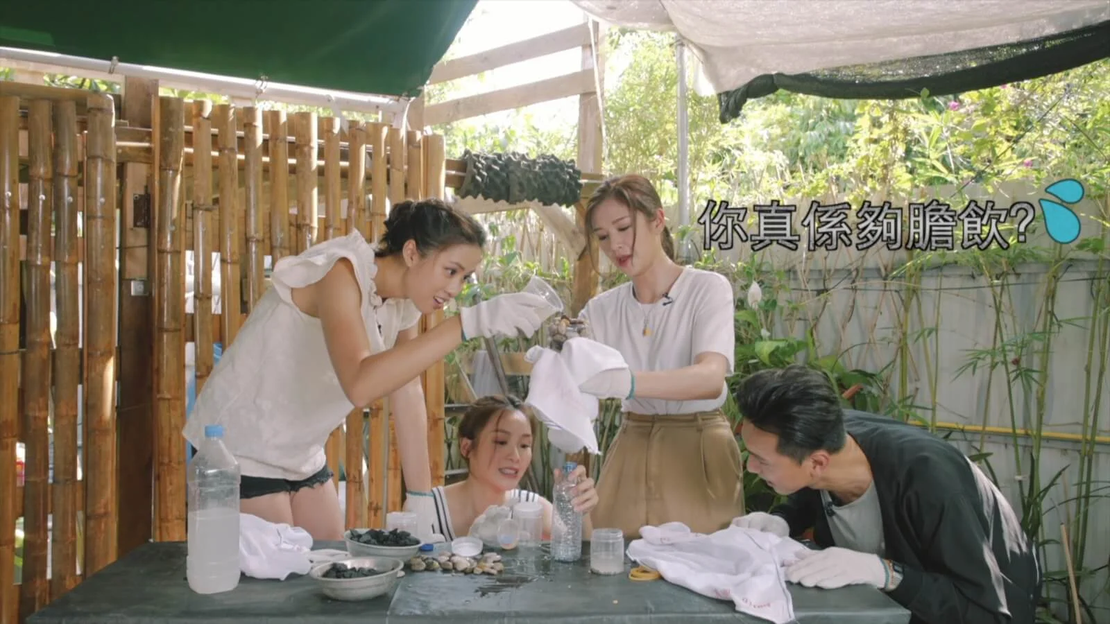 節目中三人還各展所長,先是Ali大玩「曝露年齡系列」的花繩,技巧純熟得獲諾懿大讚是「資深玩家」;另邊廂接受「野外濾水」考驗時,Mayanne智者上身只花數秒便輕鬆過關,畢業於名校英屬哥倫比亞大學化學系的她更得戚地說:「我Chem畢業架!」相當搞笑。