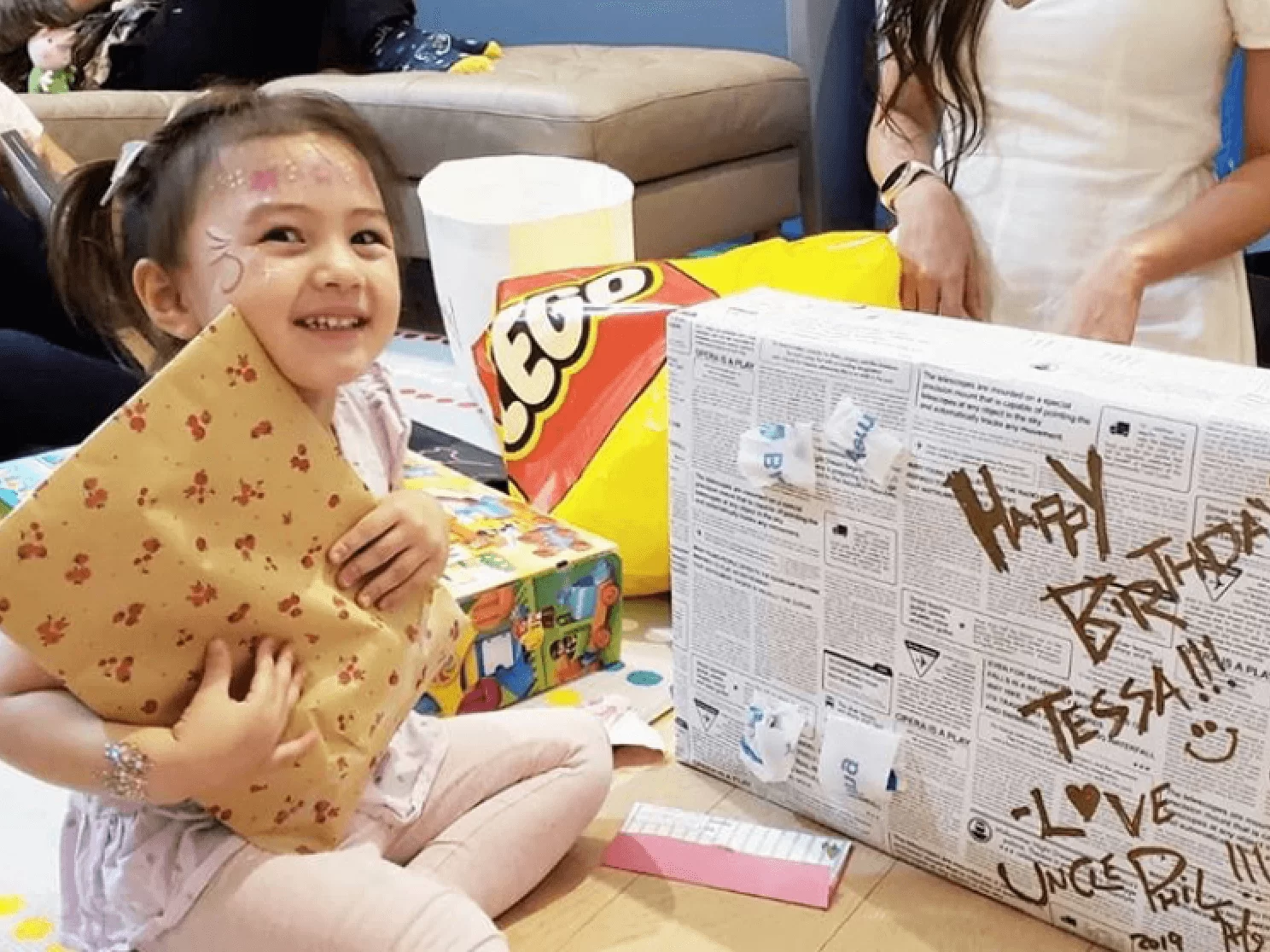 Tessa於生日會化身美人魚,打扮得非常可愛。平日形象硬朗嘅伍允龍、Vanness,見到小公主即被融化,更溫柔地同契女合照,Tessa摸摸二人面珠,冧爆兩位猛男!
