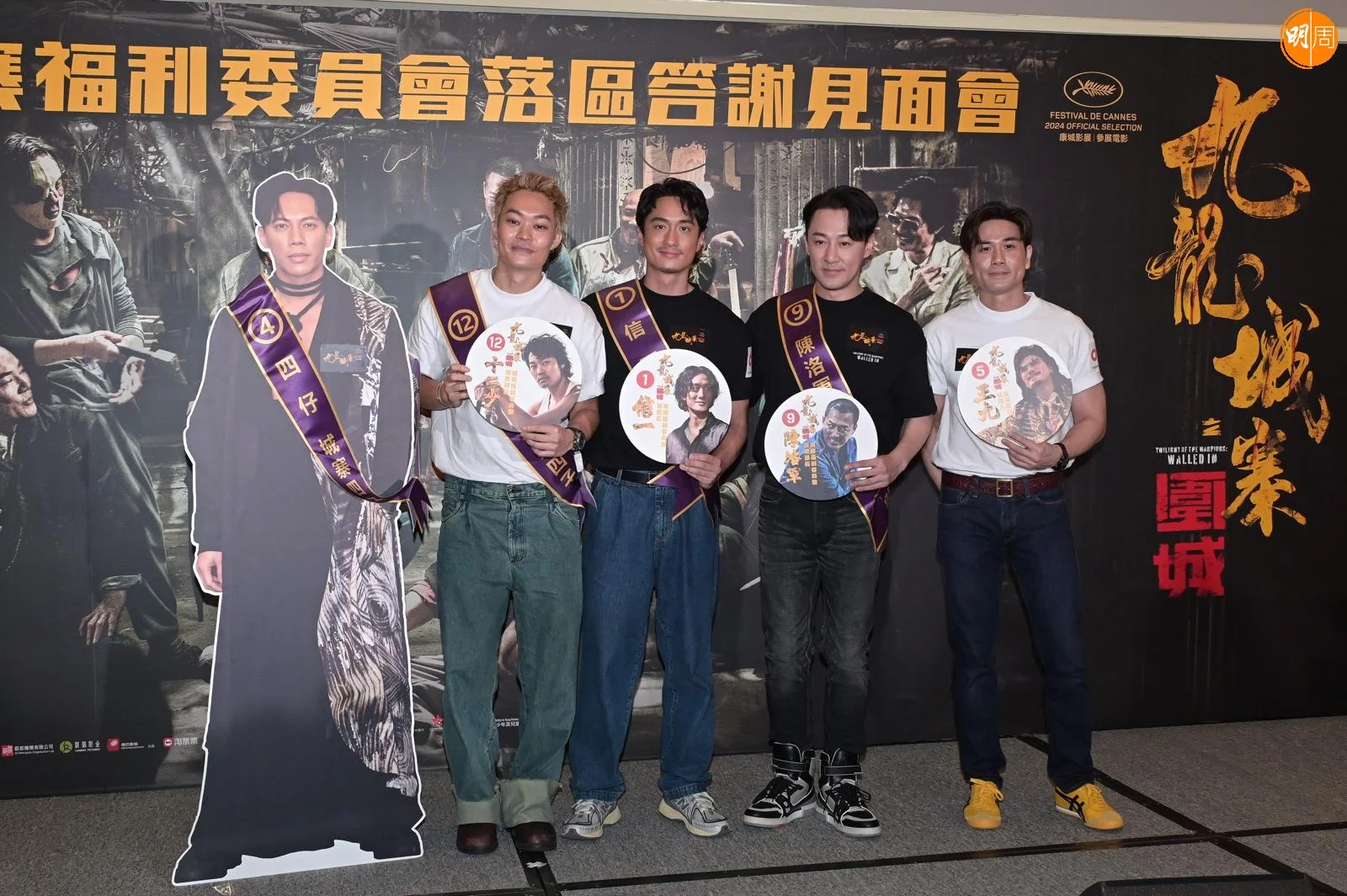 劉俊謙則大讚影迷很有愛,感覺他們不只喜歡其中一位演員,而是所有演員。提到早前女友蔡思韵表現大方,不介意有多位「劉太」,劉俊謙表示很榮幸有這麼好的女友。另外,伍允龍對這部電影的受歡迎程度表示驚嘆,「我剛才在台上忍不住問林峯,究竟我們拍了一部什麼電影,為什麼有這麼多人支持?」除了城寨四子,伍允龍亦突然多了不少「老婆」,被胡子彤爆料:「終於有人叫佢老公。」伍允龍即公開擇偶條件,「要有愛心、喜歡我,最重要是靚。」胡子彤也因為飾演「十二少」,吸納了很多不同年齡層的粉絲,他透露今日在餐廳吃早餐時,被旁邊的壯男多次偷望,當他埋單離開時,竟發現對方在餐廳外守候多時,原來是為了與他合照。