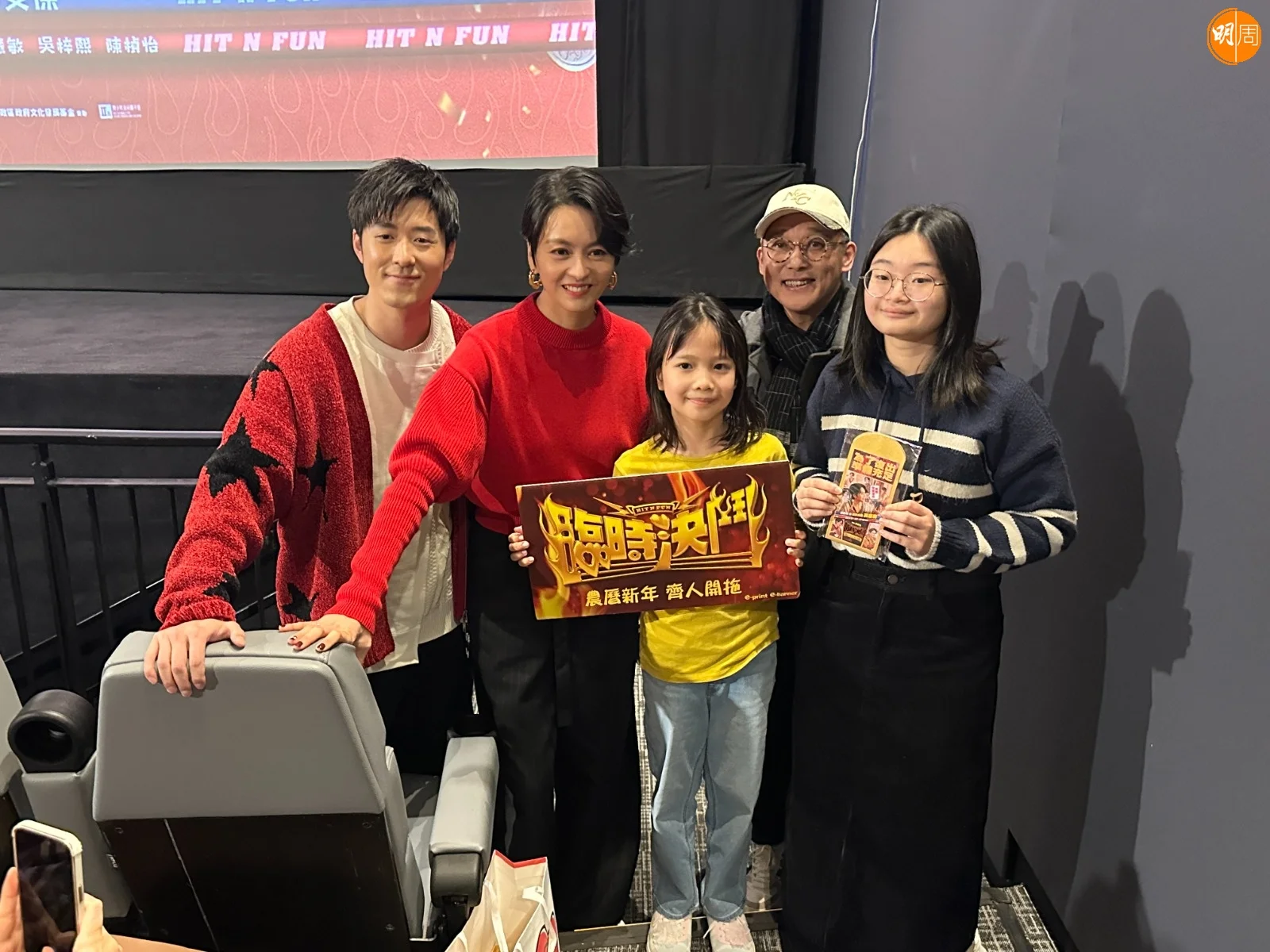 梁詠琪(Gigi)率師弟陳獻略(Henry),聯同導演麥啟光早前為賀歲電影《臨時決鬥》到戲院謝票外,Gigi更包場請一眾歌迷、圈中好友及電視劇《反起跑線聯盟》兄弟姊妹齊齊團年睇戲,GiGi說:「好鍾意拍賀歲片就係一班人開心心可以過年睇戲,希望多啲觀眾入場,激活香港電影。」心水清的Gigi更提醒子彤首日票房已過40萬,記得準備短褲仔履行承諾,非常搞笑。