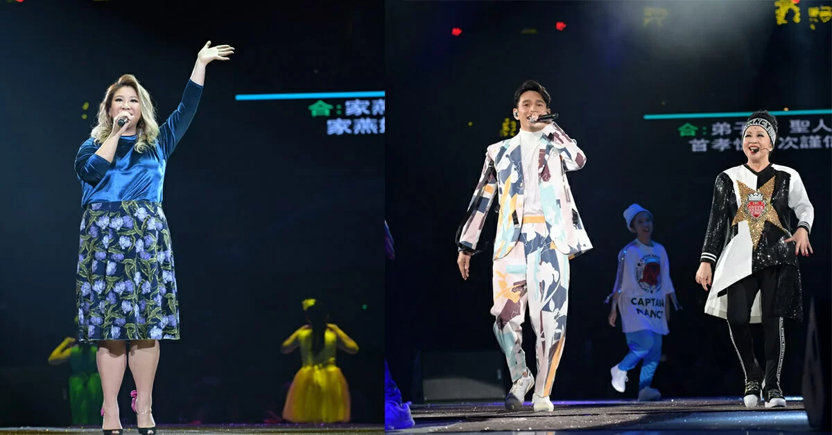 來到今晚第二場的《薛家燕愛你無限60年演唱會》,嘉賓陣容更加強勁,台下捧場的有徐小鳯、劉松仁、陳敏之等外,而台上亦星光熠熠,除了部分昨晚已表演的嘉賓,今晚更有校長譚詠麟、張智霖、草蜢及欣宜加入。