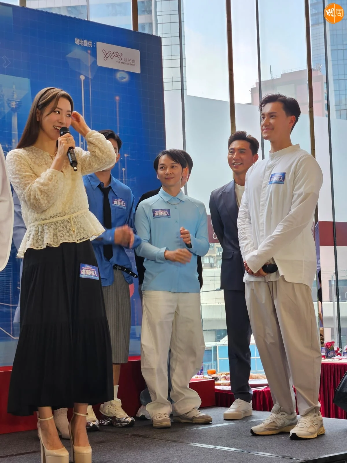 王敏奕、朱敏瀚、黃子恆、鄧智堅、周志康、林景程、袁文傑等今日(28日)出席劇集《虛擬情人》之「Adam甜蜜登場」宣傳活動,朱仔在台上唱出主題曲,「唔係好緊張,最近好多登台機會,都有唱歌機會,希望有驚喜俾大家,原來朱仔都可以唱歌,因為唱歌都係我入行前夢想,自己中學時都係合唱團出身,都拎過獎。今次首歌對劇集好有意義,雖然原唱唔係我,但好多謝監製做咗一個男仔版本俾我唱,呢幾日都會拍一啲迷你MV擺上網。」