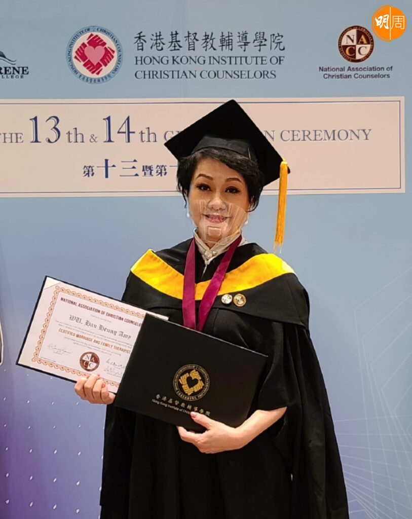 她坦言目前的志向已經改變,從演藝圈轉為輔導工作,讀了十多年的心理學,從早期被治癒,到現在為他人解心結,從中得到很大滿足感。目前進行中的博士論文,內容也以演員心理為主題,圈中演員以匿名形式,分享個人的心理轉變,她希望將來有機會,可以策劃關於情緒健康的劇場,她說:「我應該沒有時間拍電視,當年累積下來的知名度,令大家覺得我像他們熟悉的朋友,彼此很快建立互信關係,我曾經被輔導走出困境,如果可以幫助其他人,將內心扭曲的價值重建,對人生有很大益處,所以這份工作,值得我用餘下人生繼續努力。」