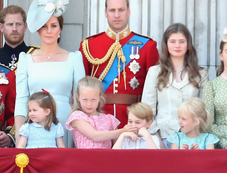 aa5. 今年六月英女王在92歲的官方壽辰舉行閱兵巡遊活動慶祝,眾王室成員在白金漢宮陽台觀看空軍表演,企前排的喬治同表姊Savannah Phillips玩得興起,即使後來被表姊嫌多嘴,被掩住把口,但眼神依然鬼馬!