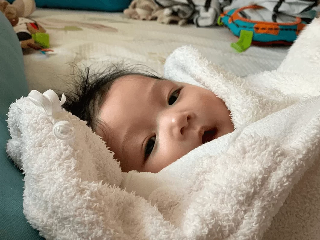 陳展鵬與單文柔(Phoebe)的囡囡「小豬比」(Quinta)今年4月出世,兩公婆不時會分享寶貝女的生活照。今日(28日)Phoebe在Instagram貼出小豬比的近照,並留言:「我的寶貝,最鍾意沖涼玩水,沖完香噴噴。」