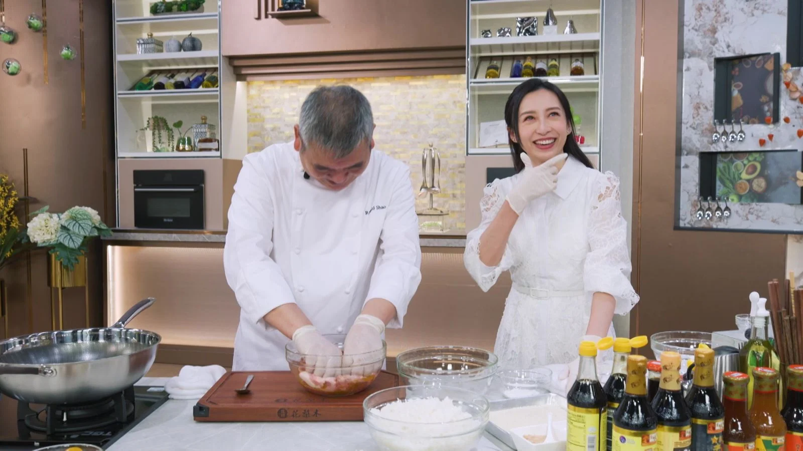 龔嘉欣(Katy)近日首度主持飲食節目《在家宴客50道菜》,本周播出的首兩集《50道菜》,六位大廚輪流上陣先後示範了八款宴客菜,分別為肥媽「大閘蟹煮雞酒」、許美德「百花煎馬友」、黃永幟「順德魚雲羹」、李家鼎「蠔豉金蠔花菇炆豬手」+「豆瓣醬酥炸田雞腿」、李文星「蔥爆海鮮鮑魚」、肥媽「啤酒焗魚頭」及邵德龍「焗豬扒飯」;六位還先後分享了不少實用入廚小秘技,包括如何以「三煎三滾」的方式熬煮出鮮味爆燈的奶白魚湯、調製口感酥脆的炸醬、鮑魚煮之前最好不要用水及用力清洗等,另外還有醃肉、解凍及炒飯小貼士,原來想肉類醃出來口感及味道更佳,最好選用指定新鮮蔬果,到底是哪幾款蔬果,便要密切留意節目。