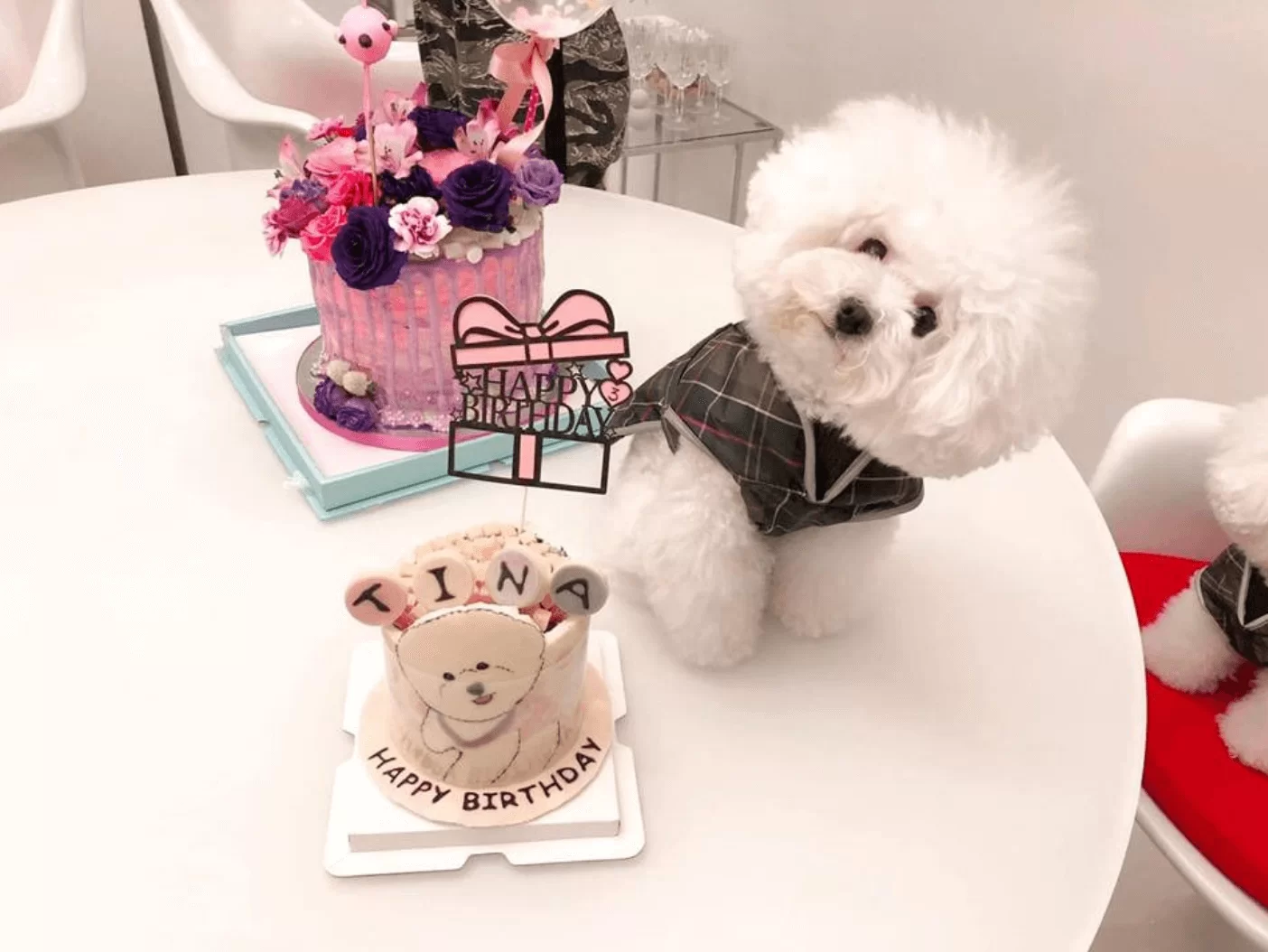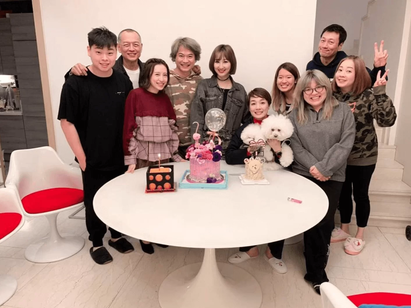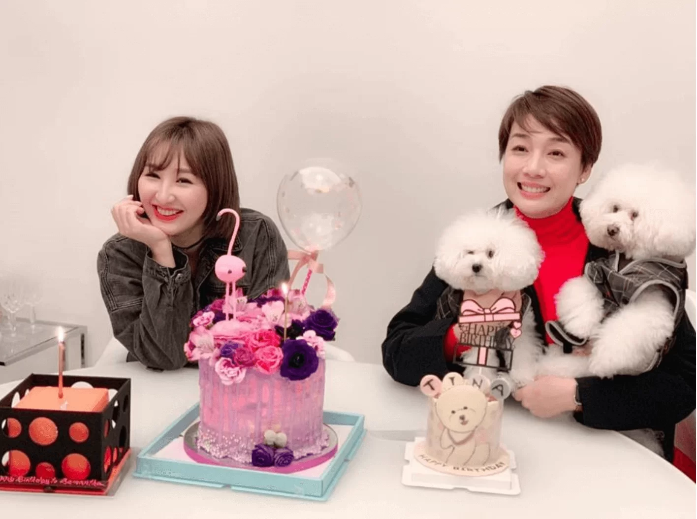 一月十三日生日的高海寧,生日飯吃不停!日前黎耀祥與太太就特別在家設宴,為她舉行生日BBQ,而好朋友江美儀亦有出席,適逢美儀的其中一隻愛犬Tina當日又是三歲生辰,美儀亦買了蛋糕為愛犬慶祝,索性人狗齊慶生。