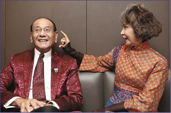 芳芳姐明年三月足七十歲,孫博士今年九十一,外表看來二人都比實際年紀年輕,問他們有否交流保養的心得,芳芳姐說:「多年來我有留意uncle 的飲食習慣,他吃什麼,我就吃什麼,但其實他什麼都吃,不戒口,我覺得心態很重要,uncle 常常笑和講笑話,他記性好,思維敏捷,每朝早都打波游水,所以身體那麼好。」孫博士笑說:「很難過她幾招,因為她做不來,我每朝游水和打網球,以前還跳繩,現在時間多還會去做 gym 和跑步。」提到芳芳姐有過五天只吃流質食物的減肥方法,她連忙糾正說:「其實我那次是說因為我要照腸鏡,所以五天只能飲水和湯,但記者沒有寫清楚,怎可能為了瘦身而五天不吃東西?因為我有耳鳴,有很多食物都不可以吃,特別是那些有咖啡因,所以我只能飲清水,暖暖地的水,原來飲水會令身體好、皮膚好好;胡楓就教我行路,這是全身運動,我約他到尖沙咀吃飯,從窩打老道山行過來,吃完他就行返屋企,所以我每天也行個多小時,不過我不出街行,我在家裏行的,有時候做點柔軟體操,女兒常叫我做一些訓練肌肉的動作,我很少做,成日偷懶。」