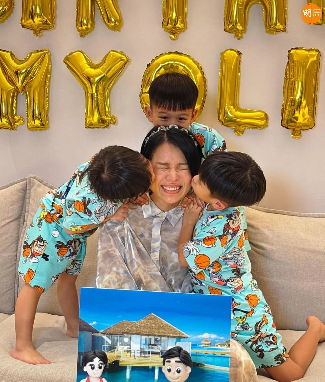 湊三個男孩子,是否要有更強的體力?她笑說:「把聲要很響,鬧他們時、叫他們時,細聲一定聽不到,一定要很響亮才會叫得醒他們,我也不知道為甚麼,但幫我練習到我的聲線、我的喉嚨。」