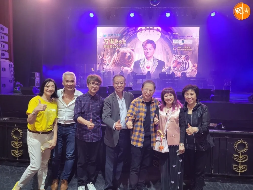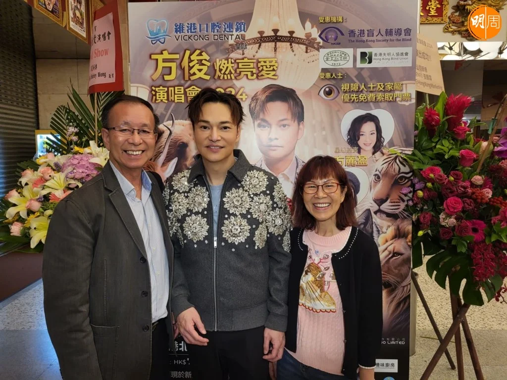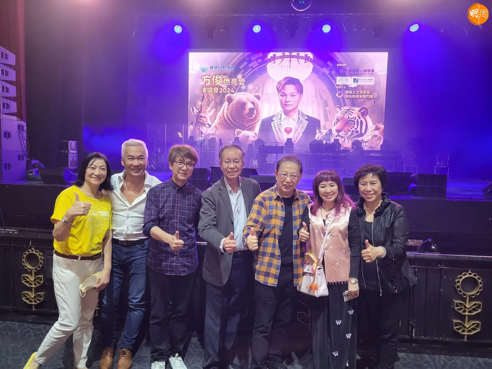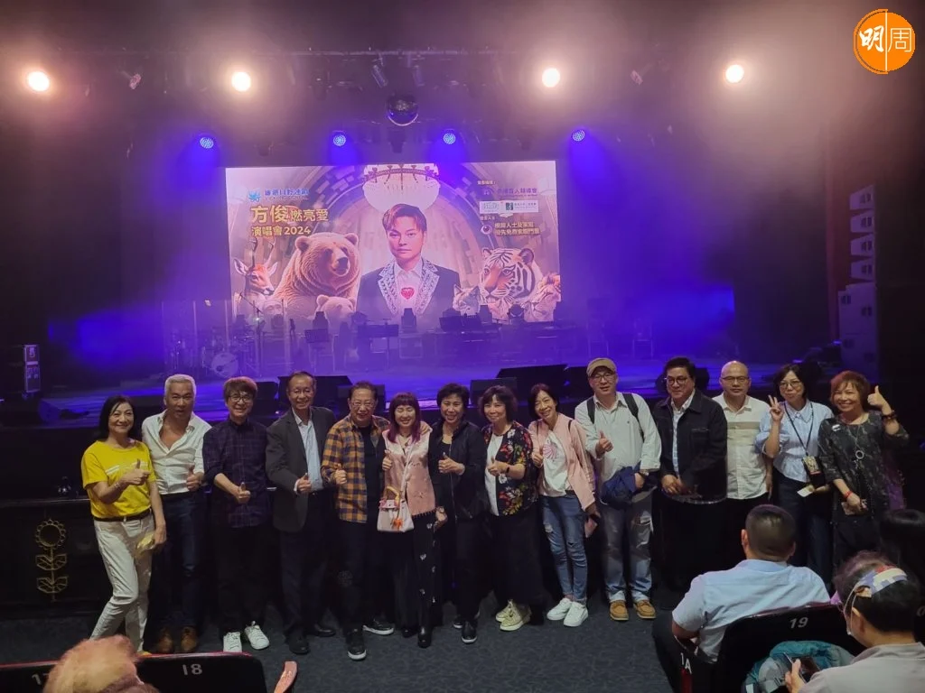 方俊處男騷昨晚(15日)順利舉行,除了與香港盲人輔導會轄下十位視障人士組成的敲擊樂隊The Cheers同埸演唱,贏得全場掌聲外,方俊演唱《離别的叮嚀》,師傅「靚聲王」張偉文坐輪椅出埸,兩師徒真情對話,淚灑舞台。