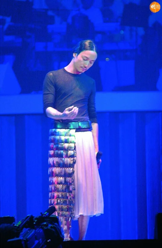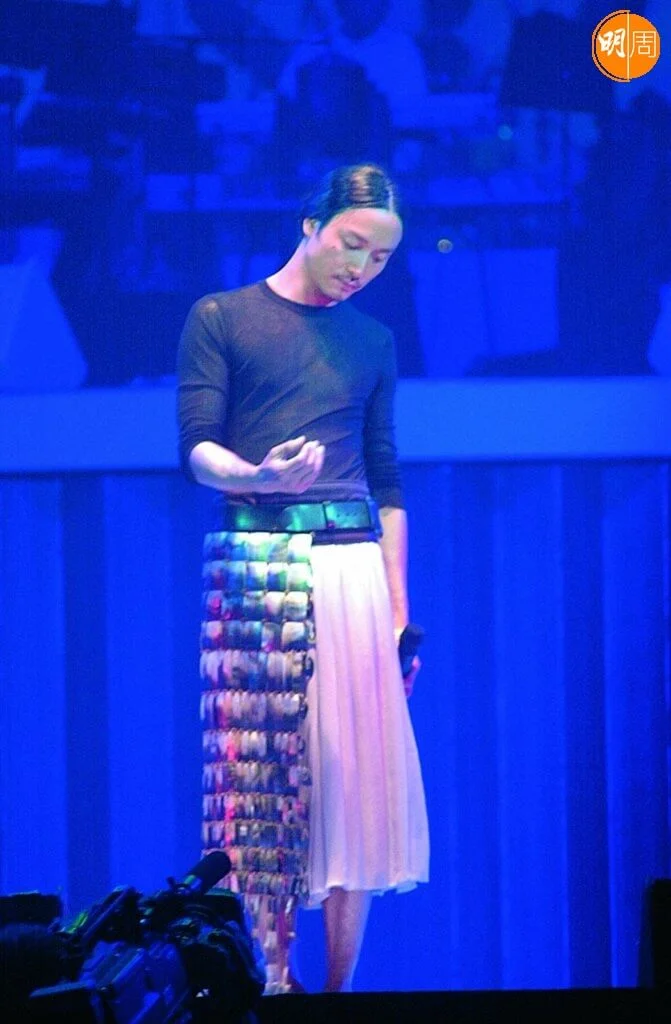 二千年,張國榮舉行《熱.情演唱會》,邀請法國時裝大師Jean Paul Gaultier,打造大膽前衛新形像,及腰長髮加露背裙配健碩肌肉,反傳統造型惹來大量負評,嘲諷他像「貞子上身」、「穿長裙扮女人」,更招來「淺薄」、「低俗」的抨擊;當年明周慶祝創刊三十二周年,首設《演藝動力大獎》,希望為演藝界台前幕後送上鼓勵,首屆「致敬大獎」得主,正是張國榮的《熱.情演唱會》,並憑《路過蜻蜓》獲最突出男歌手獎,本刊邀請譚詠麟頒獎給哥哥。