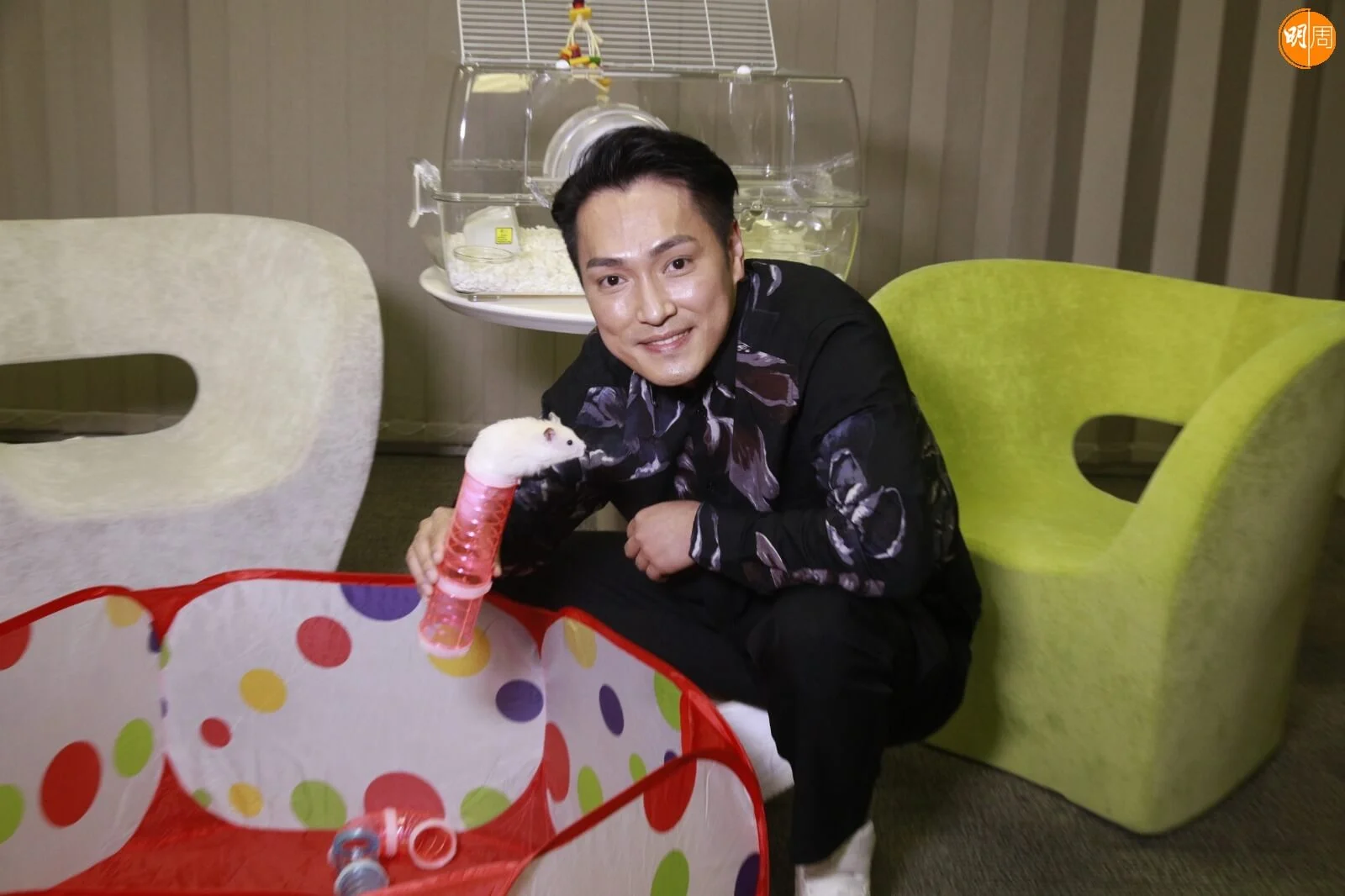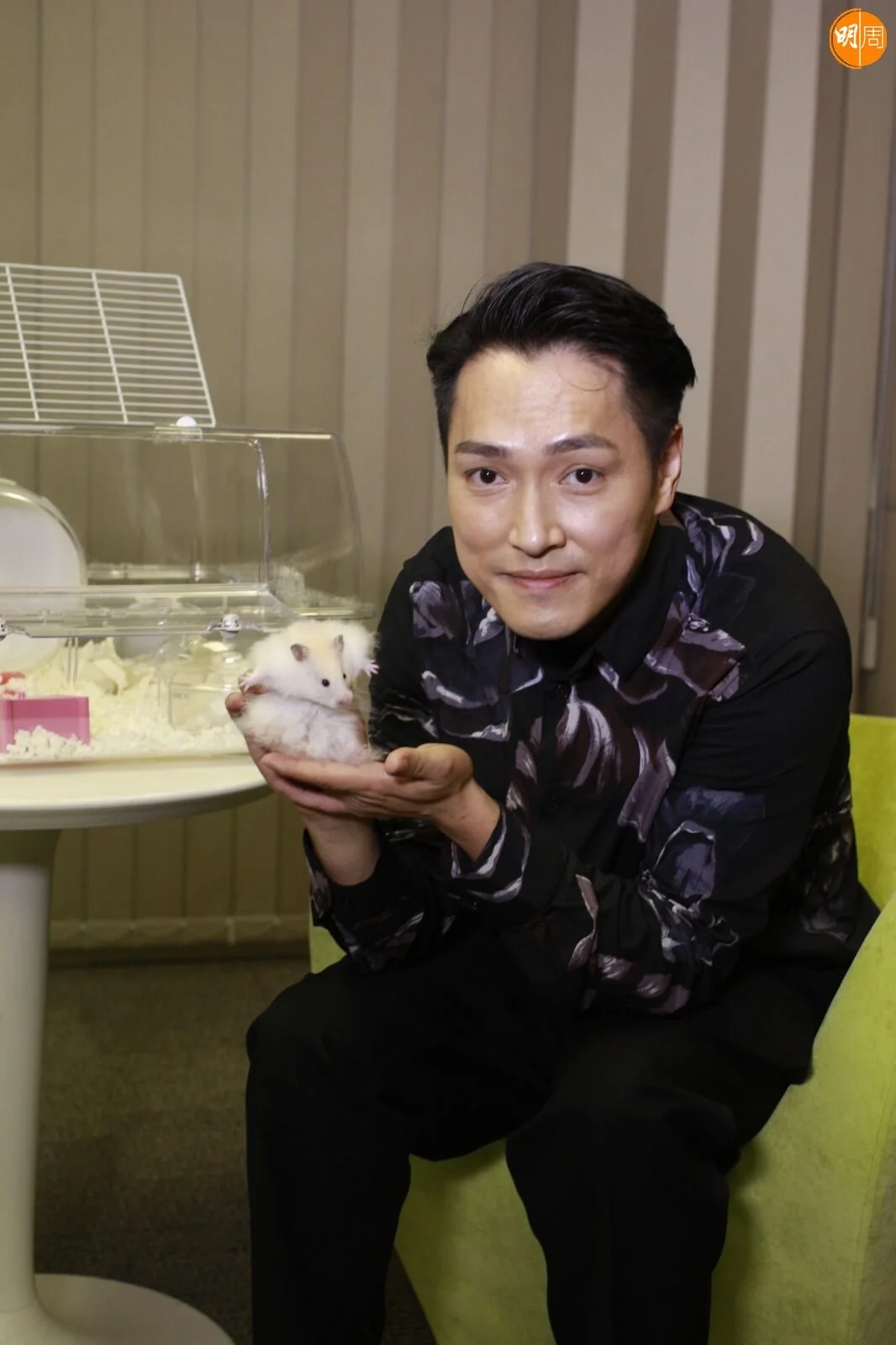 林景程現在養的是一隻三個月大的波利品種熊仔鼠,名叫「毛毛」,從朋友中領養回來。「倉鼠一生可以生很多,自己可以養到就養,但其實很困難,小時候還可以一齊住同一個籠,但長大後,牠們會分地盤,就算兄弟姐妹放在一起,牠嗅到的氣味不是自己,會打架,所以通常生完,過了頭一、兩個月,就一定要給人。」由於毛毛仍是BB階段,所以比較膽小,林景程笑言牠試過被自己不小心絆倒而嚇親。「有時我們大聲少少也會這樣,有次我飲水看着牠,發出些喉嚨吞水聲,都嚇親牠,走入角落匿埋,還有一樣很有趣的,牠要無人的情況下才踩那個滑輪,倉鼠本身很喜歡跑輪,我們還特登買了一個大輪,因為牠體型比較大,但見牠一直都沒有跑,直至一次半夜去洗手間,看見牠正在跑,於是走過去看,牠看見我定了一定,然後又馬上走回角落。」