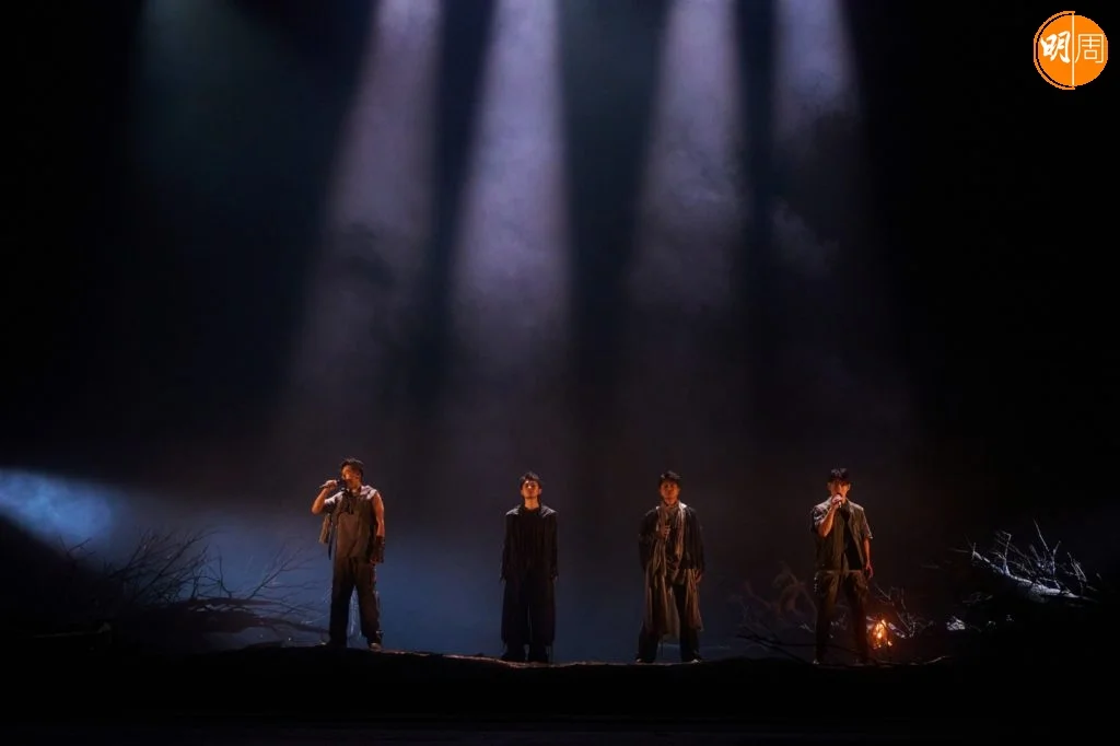 在首場正式公演的比賽中,克勤帶隊出征,演唱末日戰歌《人是_》。隨着音樂緩緩響起,舞台遍布黃沙,爆炸聲加重了旋律的悲壯,克勤像在荒蕪之中歌唱。每一處細節都透露着末日廢土的蒼涼與壯美,配合現場的真實爆破效果,讓人感受到了極大的視覺震撼與衝擊。