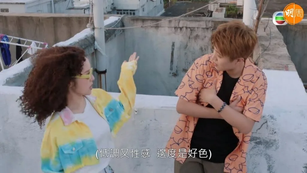 由陳豪、龔嘉欣(Katy)、鄭子誠、江嘉敏、周嘉洛、鄺潔楹(Judy)、譚凱琪(Zoie)、糖妹(黃山怡)、林景程及易宇航等主演的《新四十二章》,昨晚(10日)一集三位年青主角周嘉洛、江嘉敏及鄺潔楹均甚有發揮。劇情講述Zoie(鄺潔楹飾)為幫Mon姐(江嘉敏飾)追求柯仔(周嘉洛飾),大方向對方傳授「港女冧仔大法」,除了教授秘訣及側頭等關鍵動作外,更以極嬌嗲表情及聲線高呼港女三句:「好叻呀」、「點解嘅」、「唔知呀」。追「柯」心切的Mon在卡拉OK立定決心,側住頭兼擠眉弄眼向柯仔連環拋出港女三句,可惜因為表情誇張兼欠自然,不但惹來柯仔連番鄙視,更反問Mon姐是否落枕,相當搞笑。