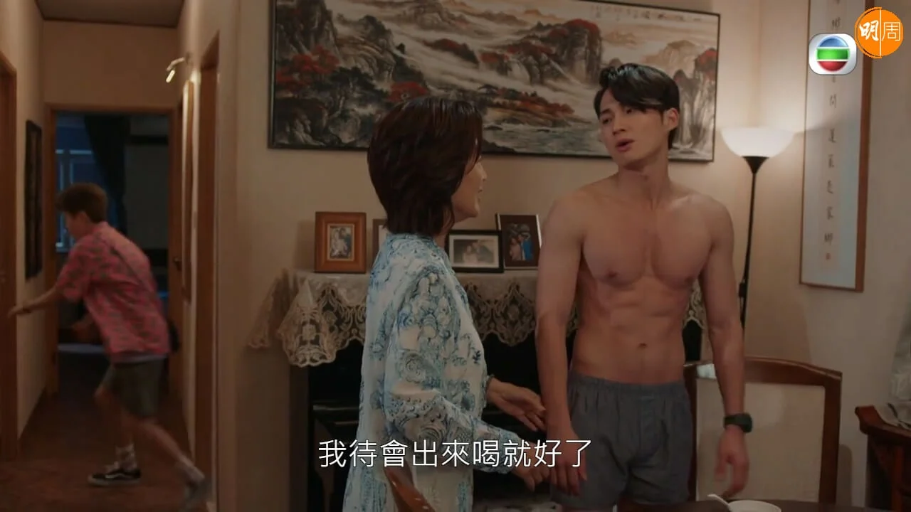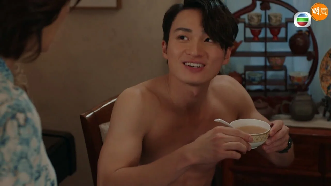 另一幕柯仔因為突然回家,以致偷偷摸摸到訪其家中的Mon姐嚇到四處躲藏,因而鬧出不少笑話。嘉洛在該個場口上身赤裸時間長達兩分鐘,白滑結實胸膛及線條分明的六塊腹肌更是相當吸睛。其實是次並非嘉洛首度晒肌,之前在《痞子殿下》及《愛‧回家之開心速遞》中亦有突破性演出,更是性感又搞笑。不過嘉洛受訪時卻謙稱自己身形不算好,並笑指身上線條是靠拍劇操出來:「好唔好其實見仁見智,如果你話線條我係有嘅,因為經常消耗多過吸收,加上有時拍戲都會有郁動,所以唔需要刻意操,上鏡都好似有啲嘢睇,但真人就其實好瘦。」