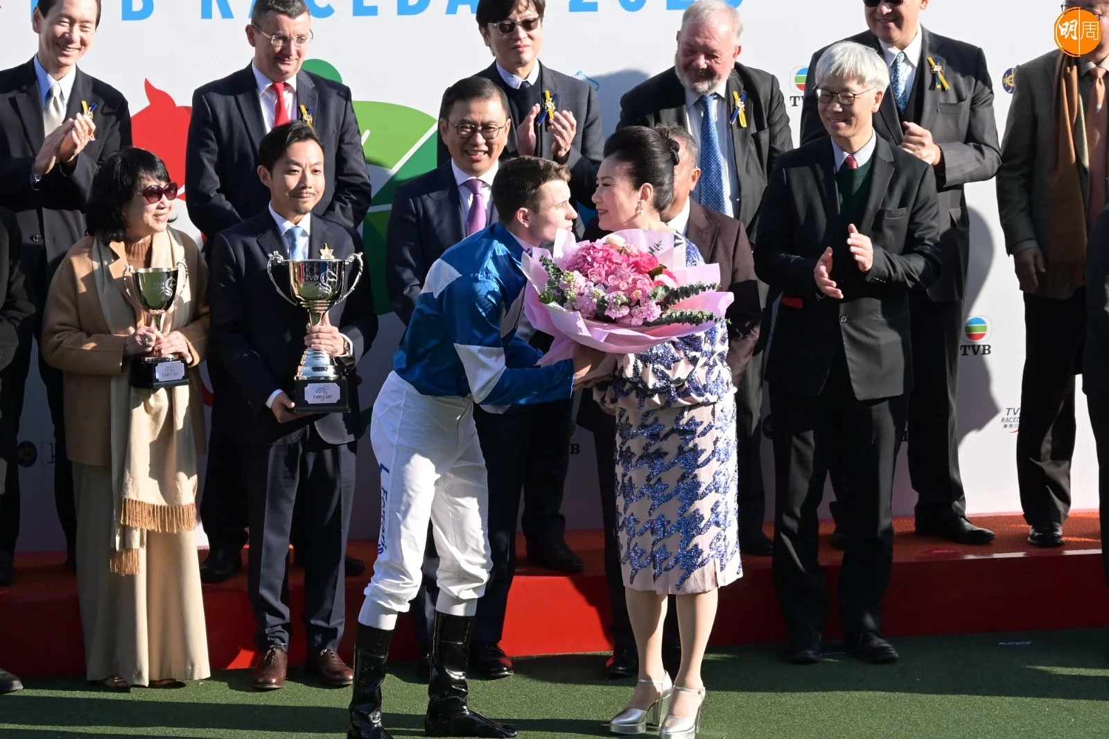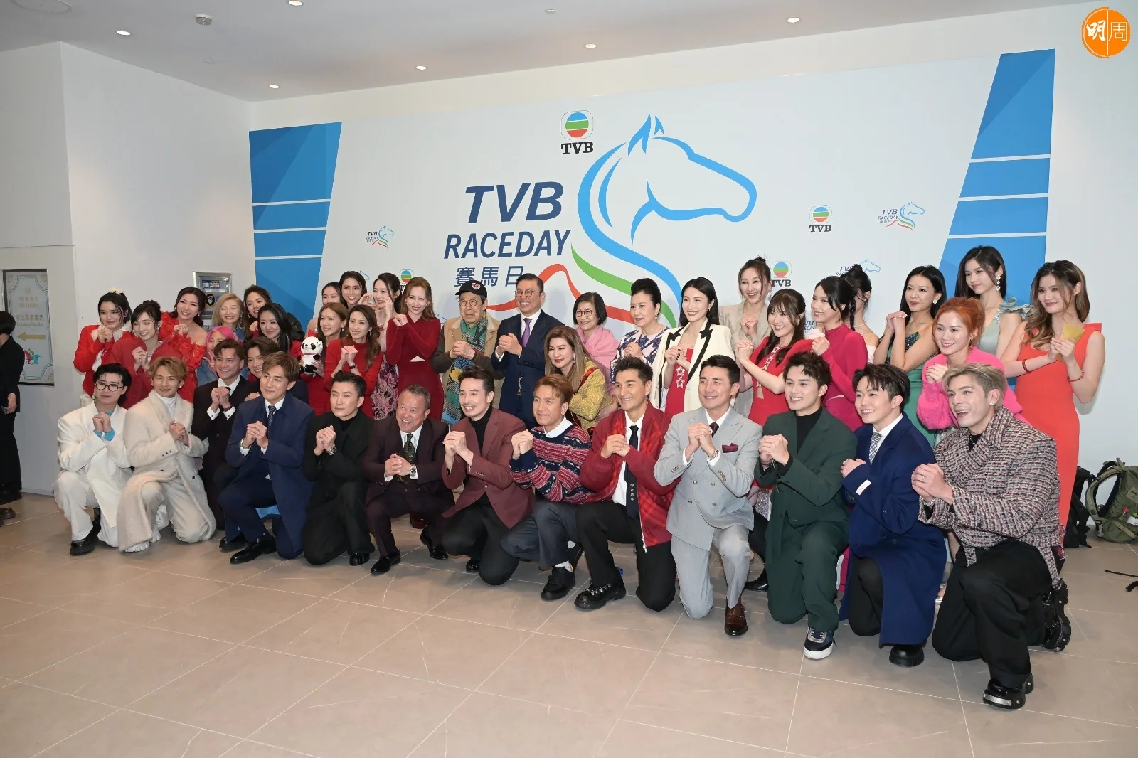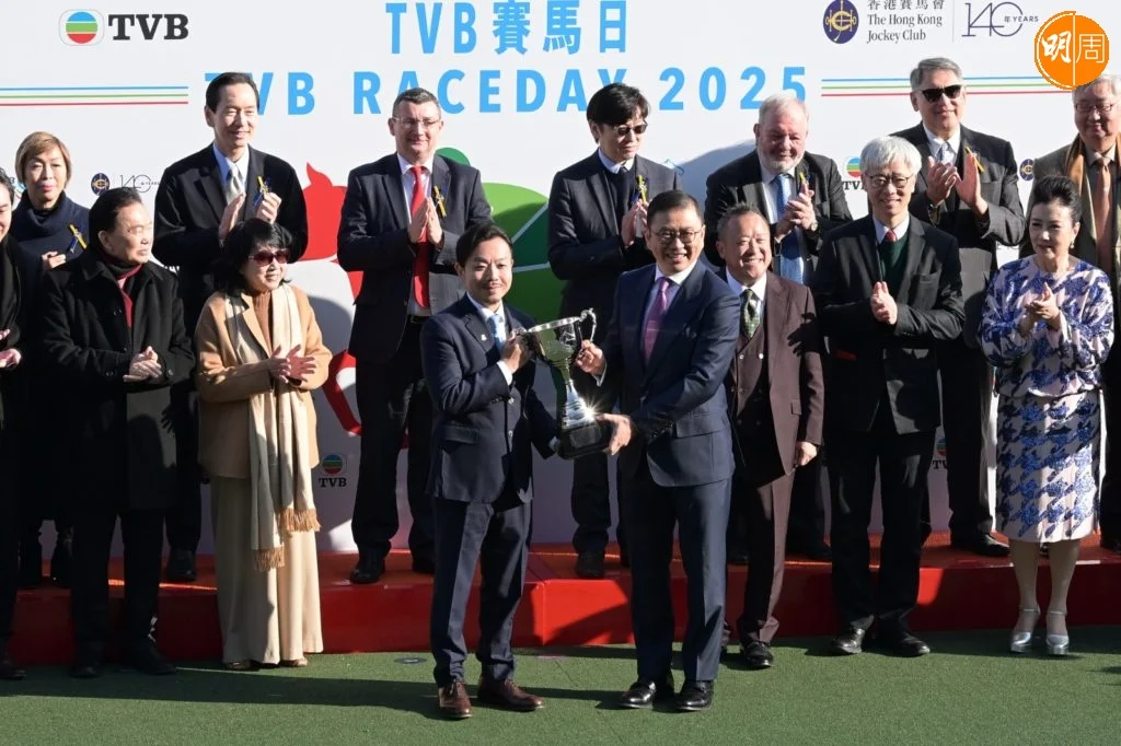 無綫行政主席許濤、總經理曾志偉、高層曾勵珍、樂易玲昨日(9日)率領一眾藝員,包括汪明荃、胡楓、陳展鵬、林夏薇、陳豪、馬國明、高海寜、劉穎鏇、朱敏瀚、陳瀅、陳山聰、姚子羚、譚俊彥、龔嘉欣、周嘉洛、姚焯菲、鍾柔美、林智樂、張馳豪、何廣沛、劉佩玥、羅天宇、陳曉華、蔡潔、洪永城與傅嘉莉等出席沙田馬場《TVB賽馬日》。